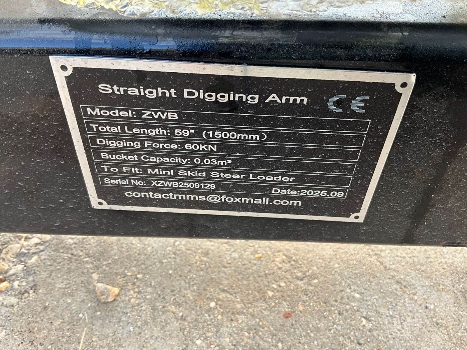 UNUSED BACKHOE, MINI SKID STEER MOUNT, LENGTH 59", BUCKET CAPACITY .03M3