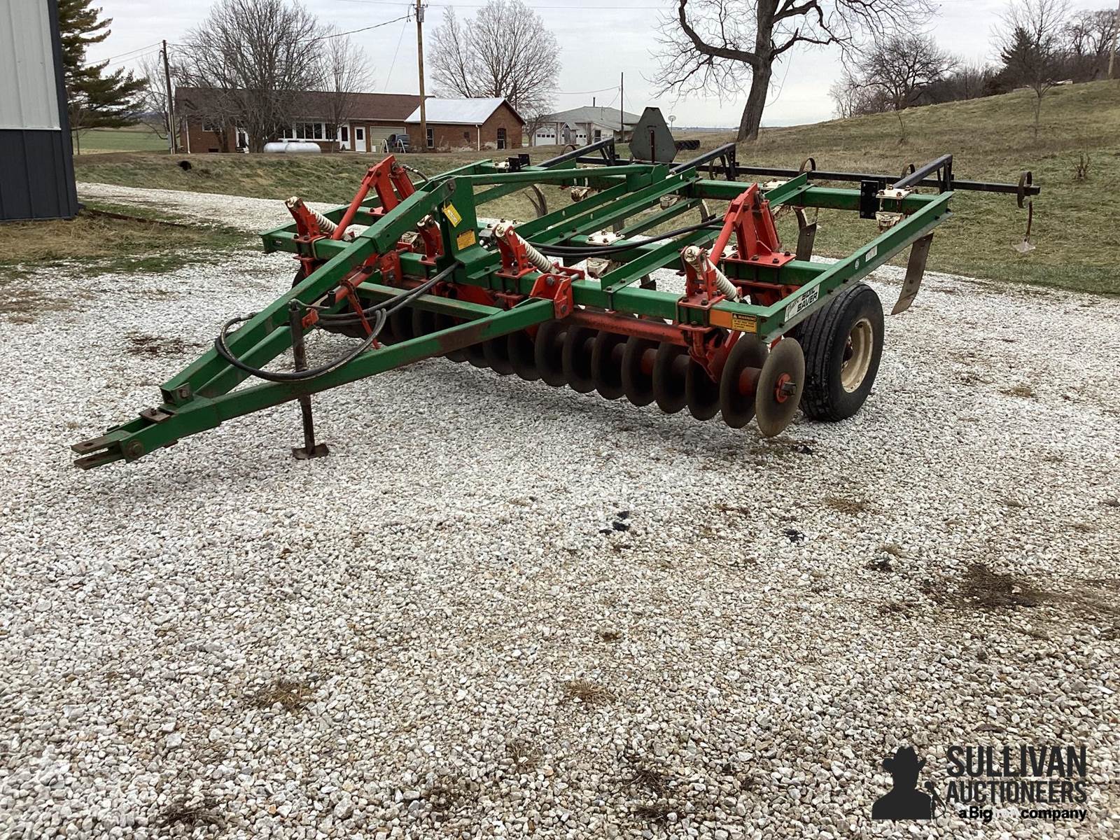 Glencoe Soil Saver 9-Shank Disk chisel, Pin Hitch, danish tine leveler, Hydraulic Down Assist, 11L-15SL Tires, SN: 158661