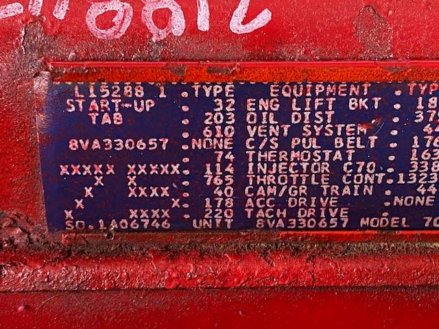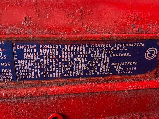 (LOW MILES) GM / DETROIT 8V-71 DIESEL ENGINE, V-8, TWO-STROKE, SUPERCHARGED, MECHANICAL FUEL PUMP, MODEL 7087-7040, ESN: 8VA-330657, 333HP @ 2300 RPM, LOW MILES AND HOURS, GOOD RUNNING UNIT WITH WARRANTY, CALL FOR MORE INFORMATION, STOCK# 218847. CALL FOR MORE INFORMAITON, MACHINERY AND TRUCK PARTS.