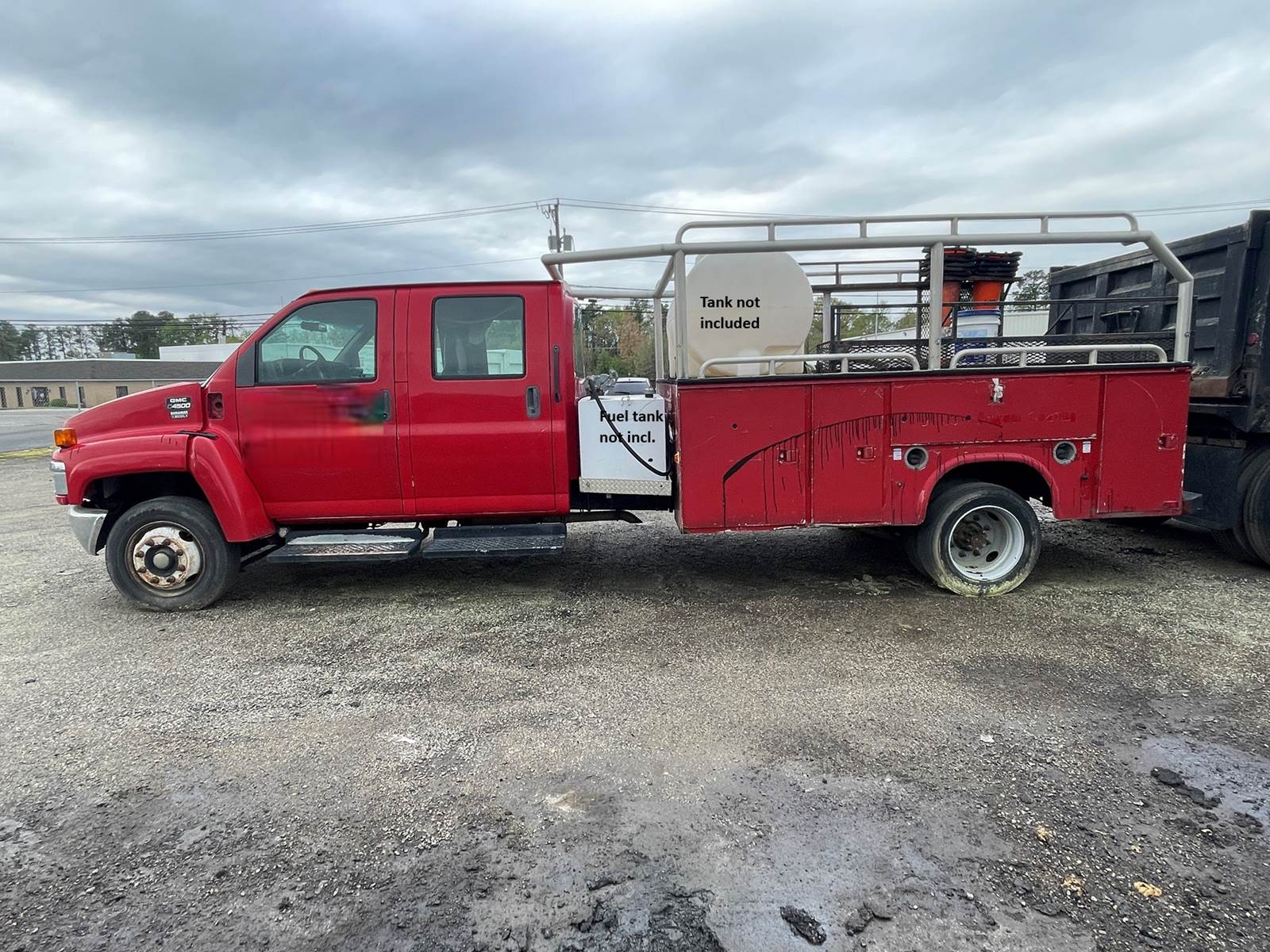 2005 GMC C4500 dually service body, crew cab, Duramax 8cyl diesel, automatic transmission, WB 215", showing 342110 miles, front 7000lbs, rear 13500lbs, GVWR 17500, power doors and windows, stability control, spray rig and gas pump tank are not included, call for more information, financing available.