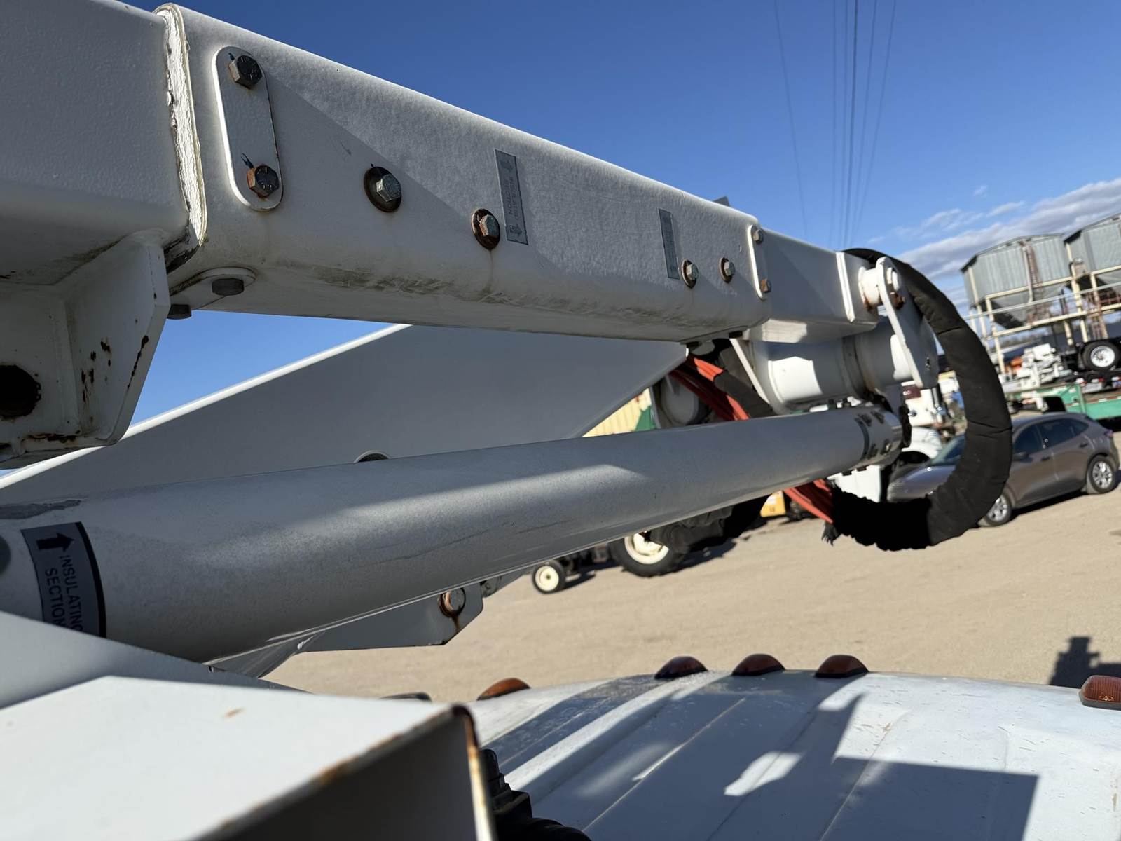 GOOD TRUCK! RUNS AND OPERATES EXCELLENT! CLEAN CAB, LOTS OF STORAGE! 2 MAN BUCKET! AIR BRAKES! REAR HITCH!,