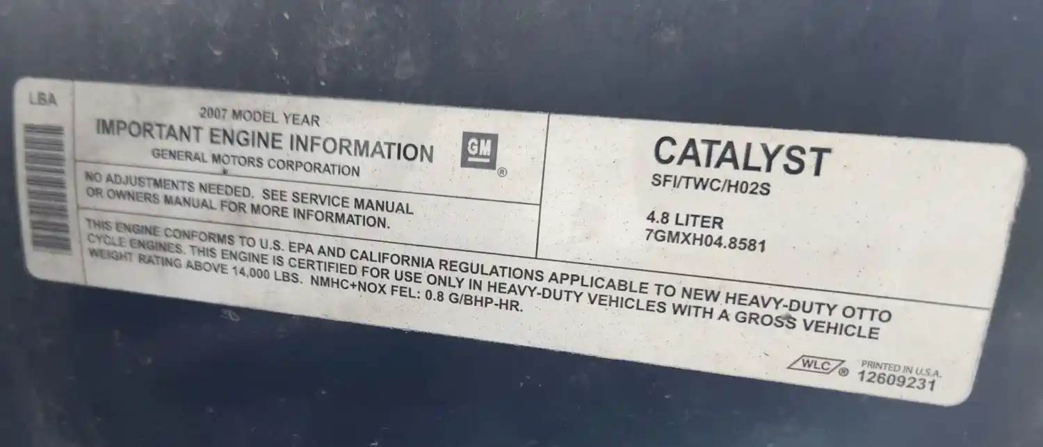 (Used) 2007 GM/Chev (HD) 4.8, ENGINE ASSEMBLY- Family Number: 7GMXH04.8581, Displacement: 4.8L, Horsepower: 295, Serial Number: TBD, E.C.S: SFI, TWC, H02S, Fuel: Gasoline, For more information about this item, give us a call. We ship Worldwide! (CRG HEAVY TRUCK PARTS) 929 W PULASKI HWY ELKTON, MD 21921, Serial#: TBD, Horse Power: 295