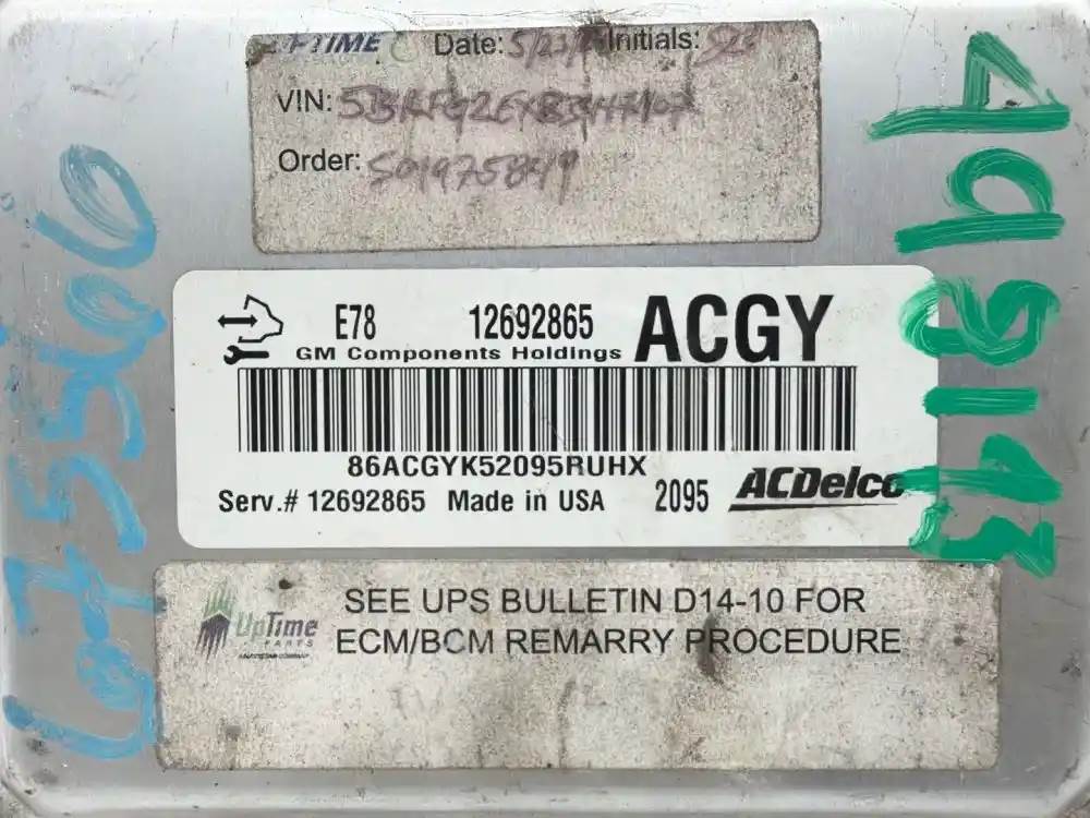 (Used) 2011 GM/Chev (HD) 6.0L, ENGINE ECM- Part Number: 12692865, Serial Number: 86ACGYK52095RUHX, Order: 501975849. E78 12692865 ACGY, 2095, 1 Rectangular Plug with 65 Pins, 1 Rectangular Plug with 73 Pins, 1 Rectangular Plug with 55 Pins, Reference images for condition. For more information about this item, give us a call. We ship Worldwide! (CRG HEAVY TRUCK PARTS) 929 W PULASKI HWY ELKTON, MD 21921, Serial#: 86ACGYK52095RUHX