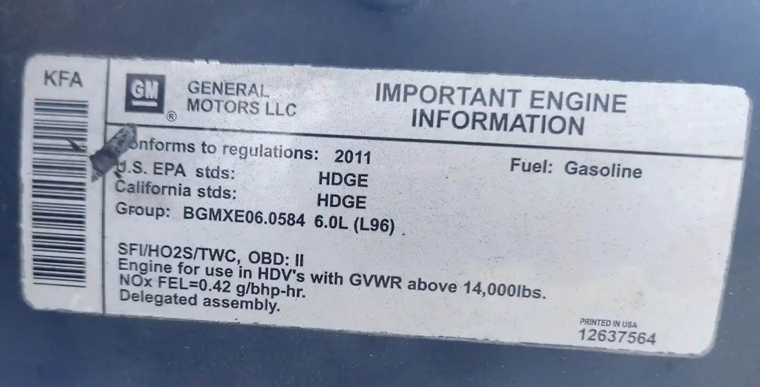 GM/Chev (HD) 6.0L Engine for a 2011 Workhorse Custom Chassis W62