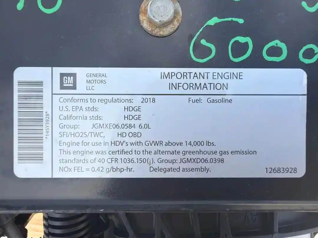 Good used 2018 Isuzu NPR-HD GM 6.0L Gas (Engine Assembly #JGMXE06.0584) with 145,340 miles. Call for questions on price and shipping. All parts come with a 90 day warranty. All Engines are field tested by our trusted mechanics. All Engines are drained of all fluids, cleaned, and inspected before shipping. To check availability for any of our parts, call us or visit our website BusbeeTruckParts.com. (Interchange: 2017 2018 2019 2020 Isuzu NPR NRR NQR NPR-HD Chevy GMC W3500 W4500 W5500 GM 6.0 Gas)., Serial#: JGMXE06.0584, Casting#: N/A