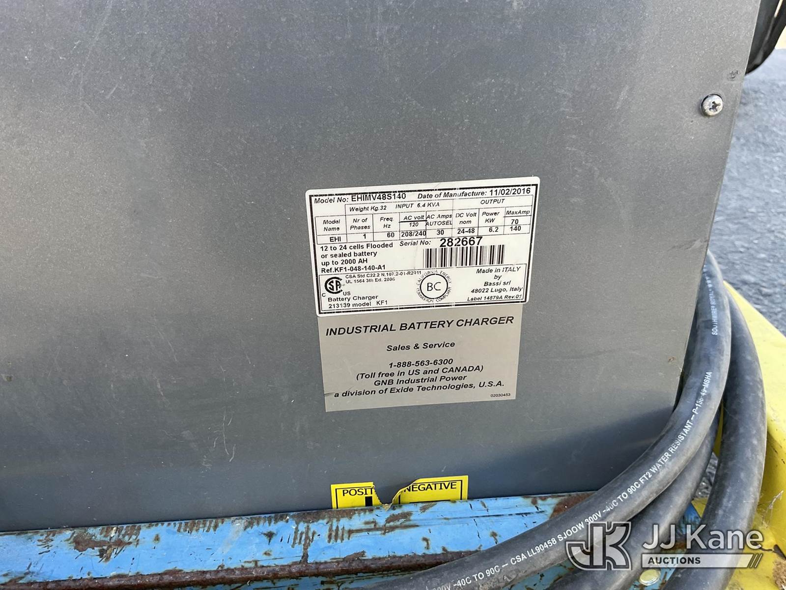 GNB Industrial Charger (Conditions Unknown)(Used) NOTE: This unit is being sold AS IS/WHERE IS via Timed Auction and is located in Dixon, CA. Inspection & preview days for this unit are the 2 business days prior to the first day of items closing for this auction, item is located at 8668 Sparling Ln Dixon, CA 95620 and hours of operations are 8a-4p. For pre-sale questions, please contact JJ Kane Staff at (707) 678-8060 (dixon@jjkane.com). Dealer License Number 45696. (Buyer is responsible for removal. Assistance by consignor or JJ Kane Auctions is not assured.)