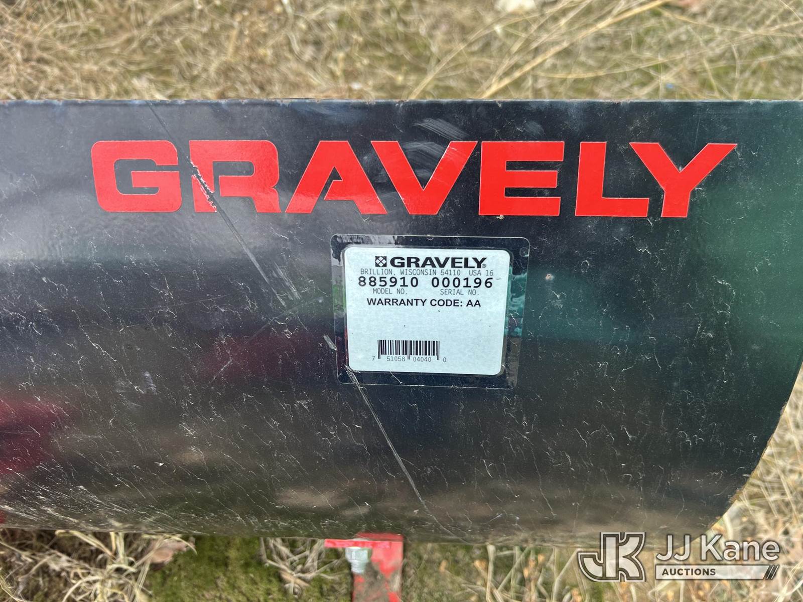 Gravely 885190 Plow attachment, s/n 000196 (Used) (BUYER RESPONSIBLE FOR LOAD OUT – NO FORKLIFT ONSITE FOR ASSISTANCE) NOTE: This unit is being sold AS IS/WHERE IS via Timed Auction and is located in Shakopee, MN. Inspection & preview days for this unit are the 2 business days prior to the first day of items closing for this auction, item is located at 1109 Stagecoach Rd Shakopee, MN 55379 and hours of operations are 8a-3p. For pre-sale questions, please contact Office Staff @ (651) 421-3305. (Buyer is responsible for removal. Assistance by consignor or JJ Kane Auctions is not assured.)
