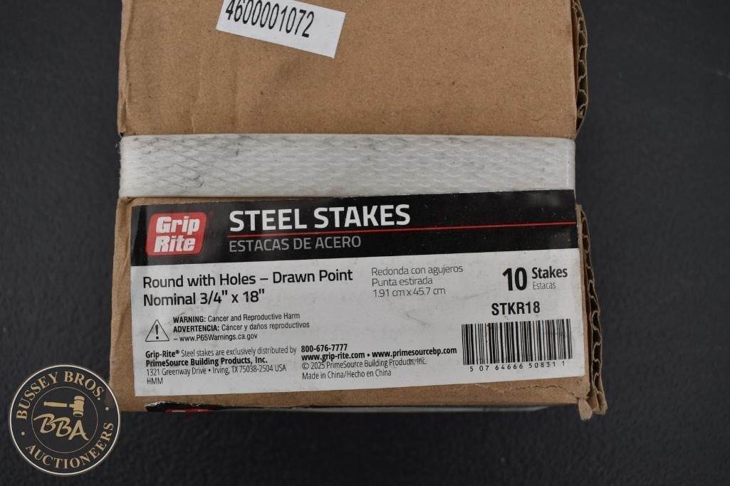 Grip Rite 18inch X 3/4inch Steel Concrete Stakes lot contains 10 Stakes, NEW/UNUSED