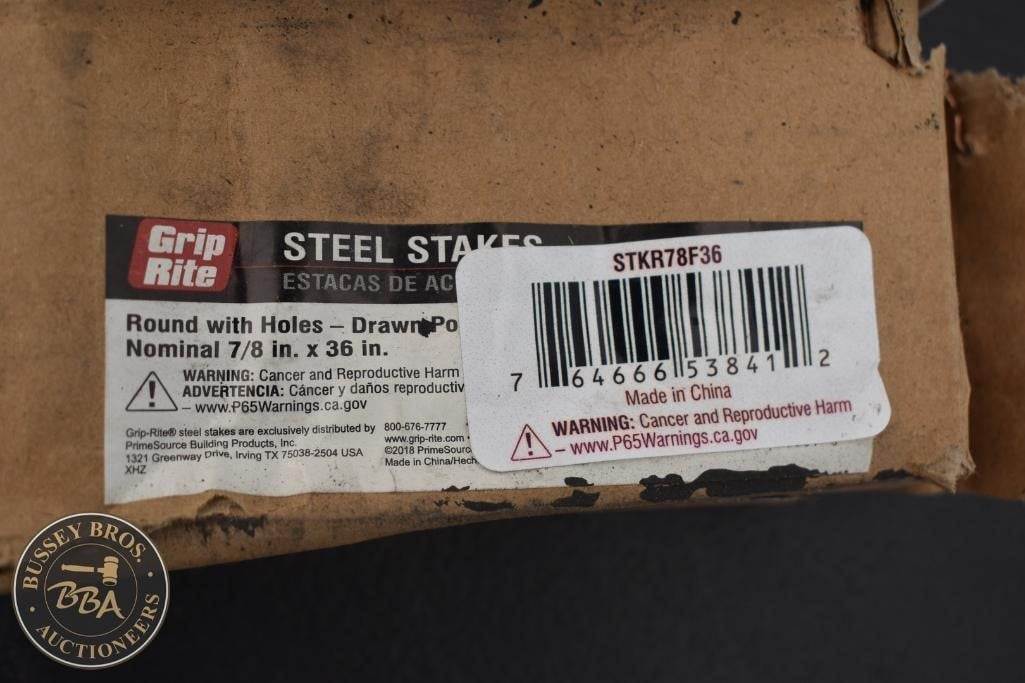 Grip Rite 36inch X 7/8inch Steel Concrete Stakes lot contains 10 Stakes, NEW/UNUSED