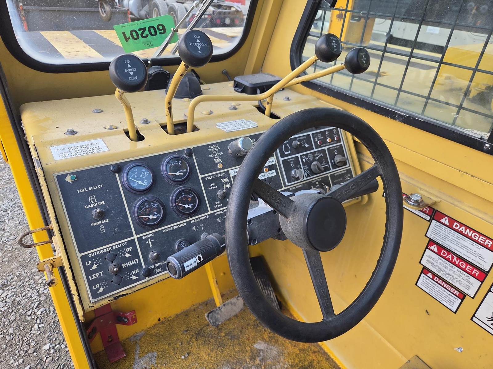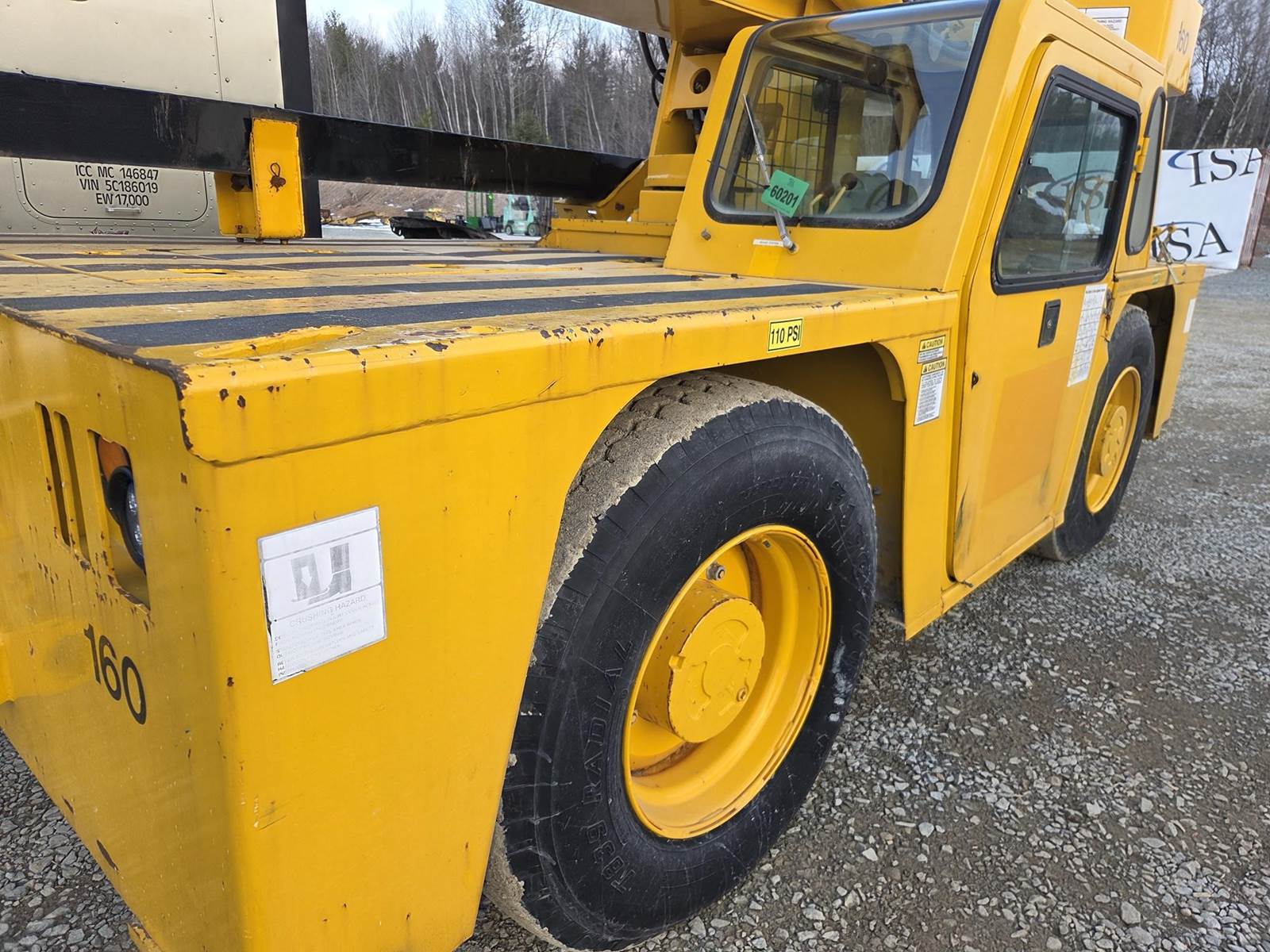 Vortex V6 4.3L Gasoline/Propane Engine, 3 Speed Powershift Transmission, 4 Wheel Steer, (4) Outriggers, McKissick 16.5 Ton Crane Block, EROPS, 385/65R22.5 Tires, Bill of Sale Only - Title Not Available