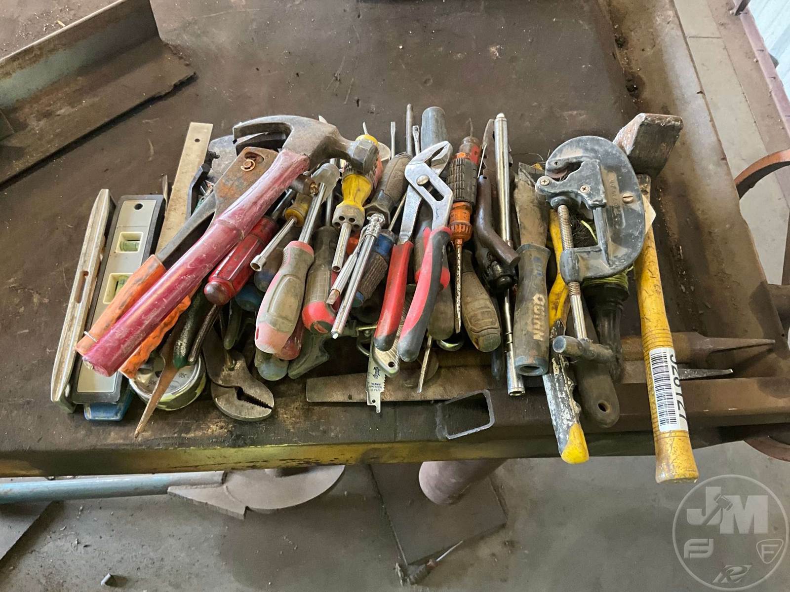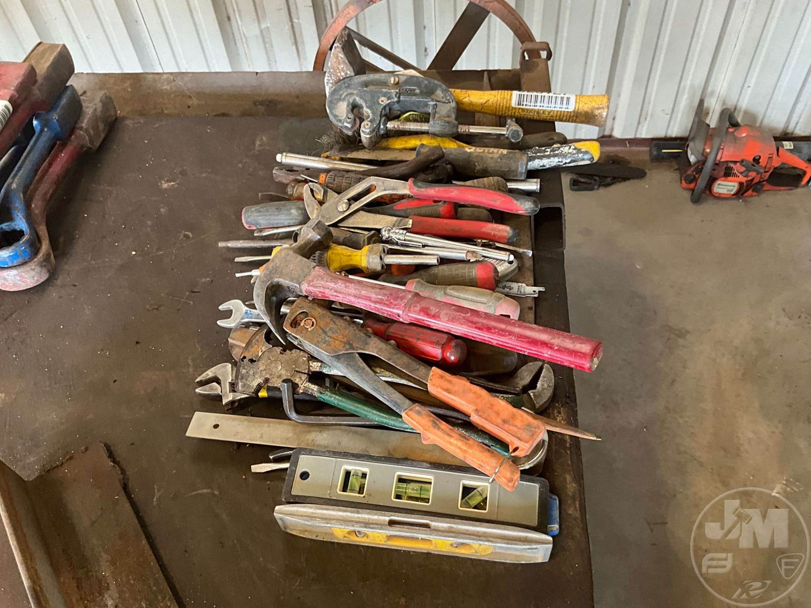 HAND TOOLS VARIOUS HAND TOOLS, TO INCLUDE VARIOUS SCREW DRIVERS, PLIERS, HAMMER, AMD TORPEDO LEVELS