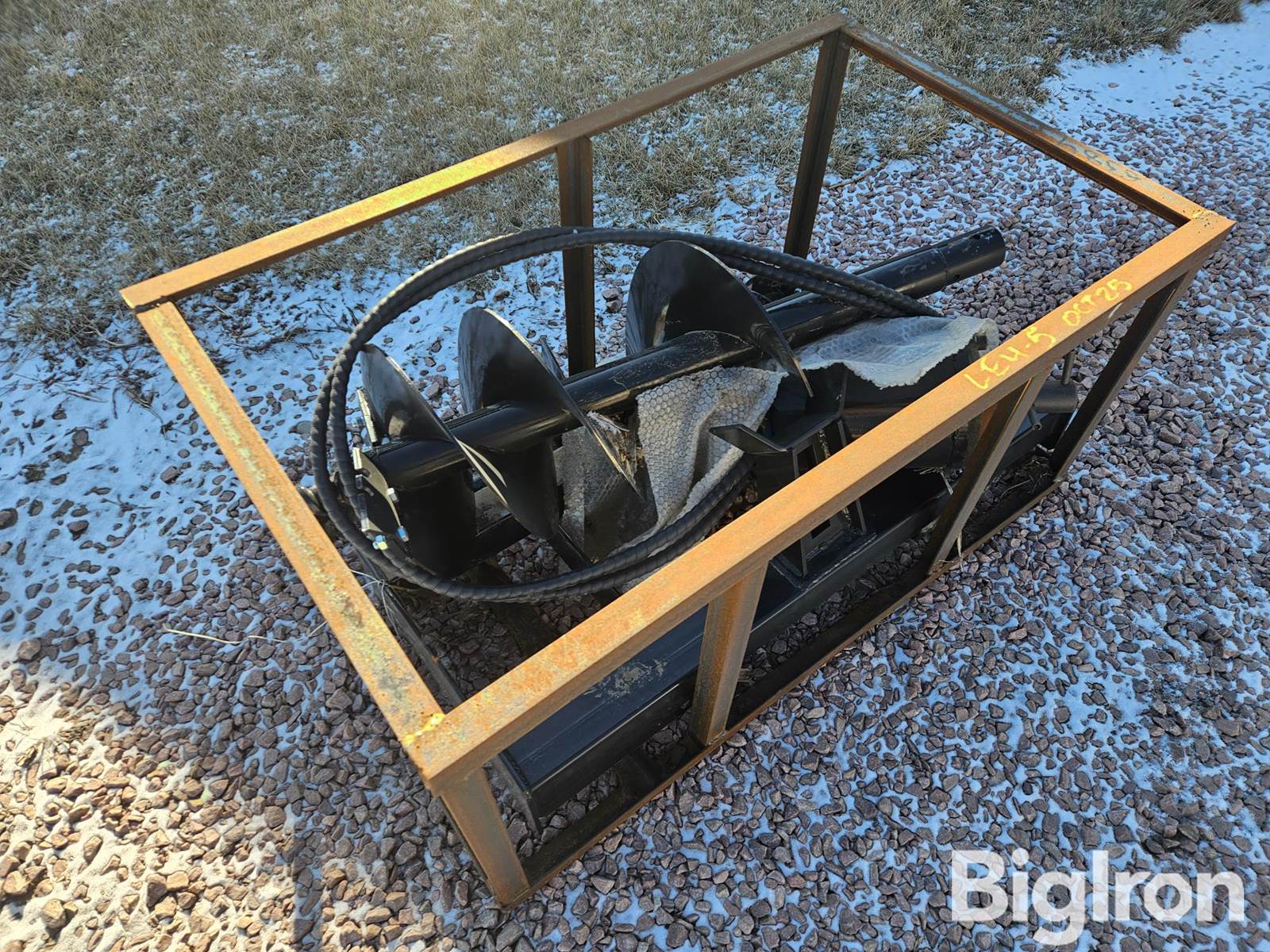 Handy SSA18 Auger Skid Steer Attachment, Universal Skid Steer Mounting Plate, Hydraulic Driven, Hoses, Flat Faced Couplers, 6" Auger, 12" Auger, Unused, Steel Shipping Crate Included