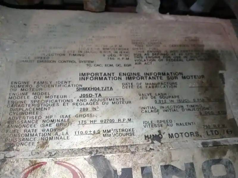RUNNER, Serial#: 9HMXH04.7JTF, Core Charge: 0, Horse Power: 175 HP @ 2500 RPM, Part Make: HINO