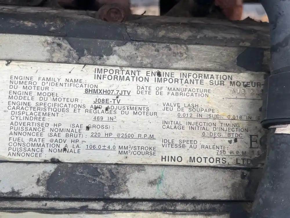 (Used) 2006 Hino J08E-TA, ENGINE ASSEMBLY- Family Number: 6HMXH07.7JTA, Displacement: 7.6L, Horsepower: 220, Serial Number: TBD, E.C.S: TC,...