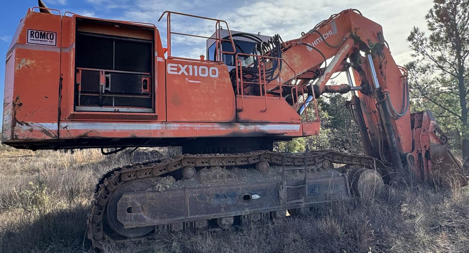 Hitachi EX1100 for sale. Has 76,727 hrs. Engine is a Cummins KTTA 19-C, 700 HP, Operating weight of 250,000 lbs, Bucket capacity of up to 6.3M, Track width of 15.1ft, E-P Control system, OHS, New batteries, heat and air, recently just serviced, Financing Available.......more pics and video upon request.