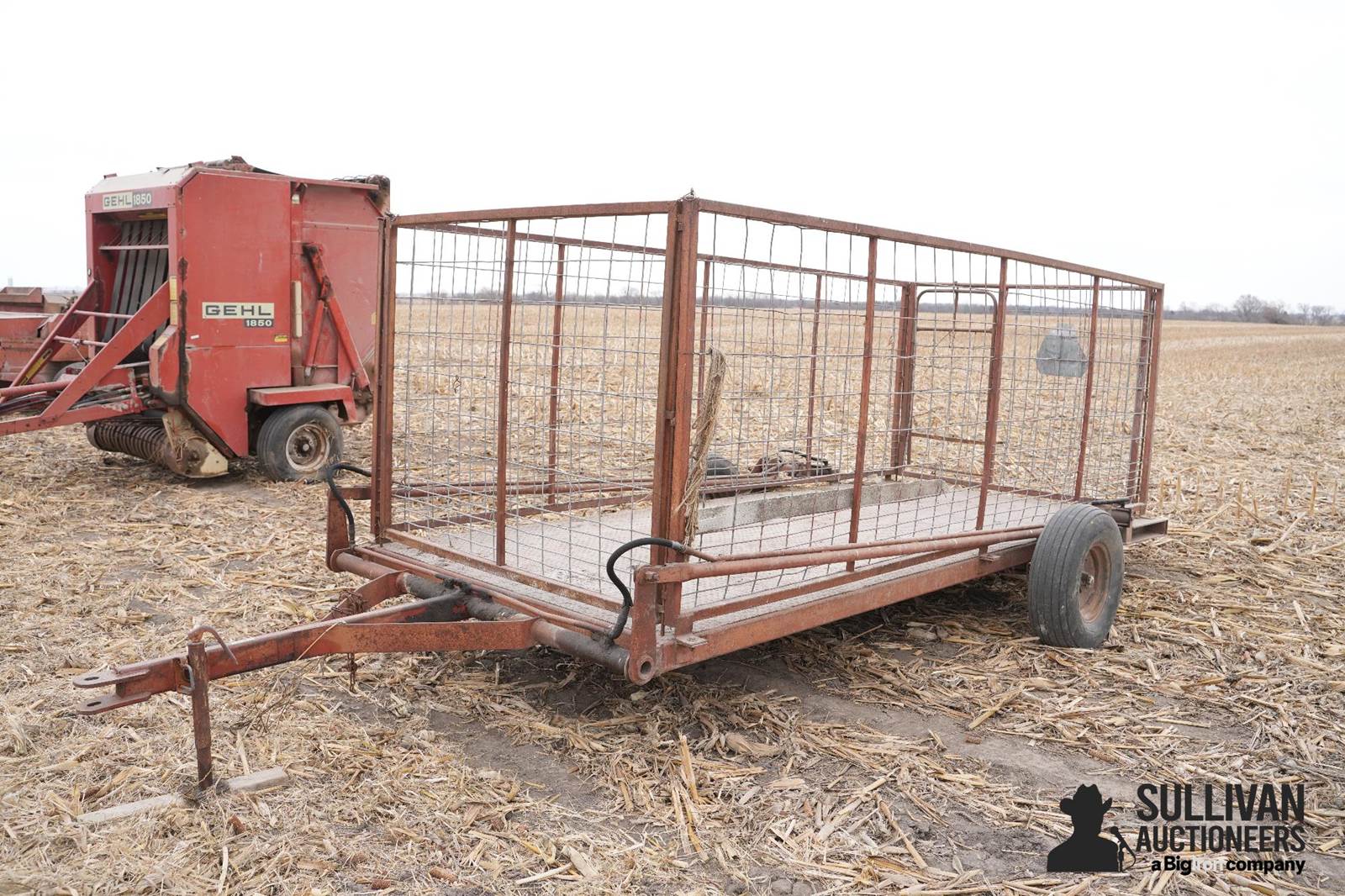 Hog Cart, single axles, steel wheels, steel floor, pin hitch, 9.5L-14SL tires