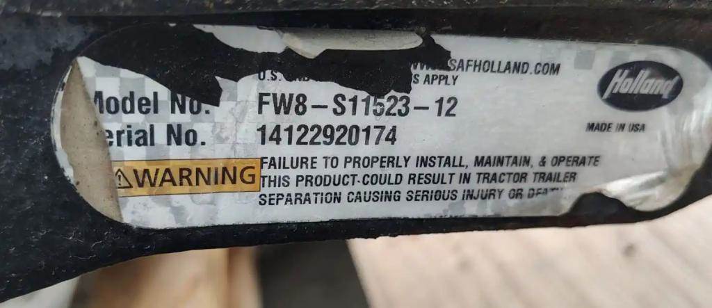 Holland FW8 Stationary Fifth Wheel, 33.5" Frame Width, 43.5" Rail Length, 8.75" Deck Height. P/N FW8-S11523-12, S/N 14122920174