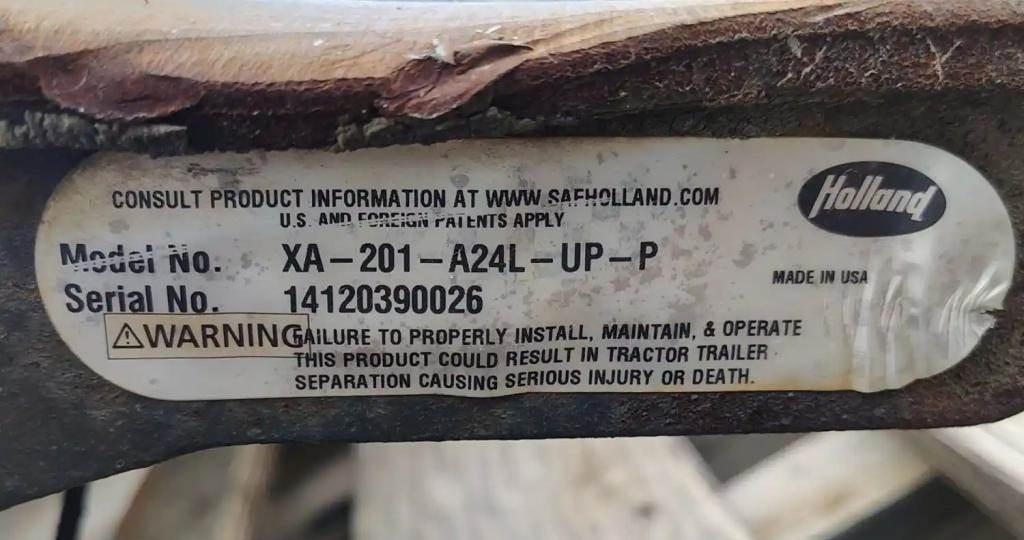 Holland Stationary Fifth Wheel, 34" Frame Width, 49 3/8" Rail Length, 8" Deck Height, Driver Side Release. P/N XA-201-A24L-UP-P, S/N 14120390026