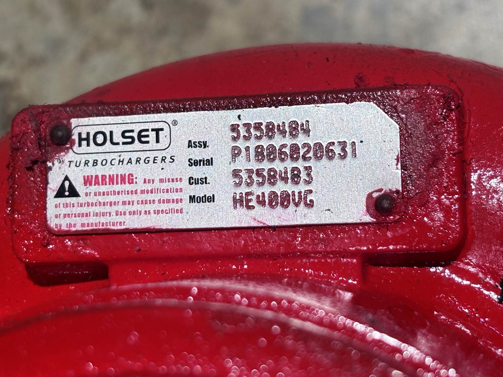 (GOOD USED) Holset HE400VG Turbocharger for Cummins X15 Diesel Engine, for sale!!! Assy #: 5358484; Supersession Part #: 5358483, 5454982, 5458937; Stock #: T1220