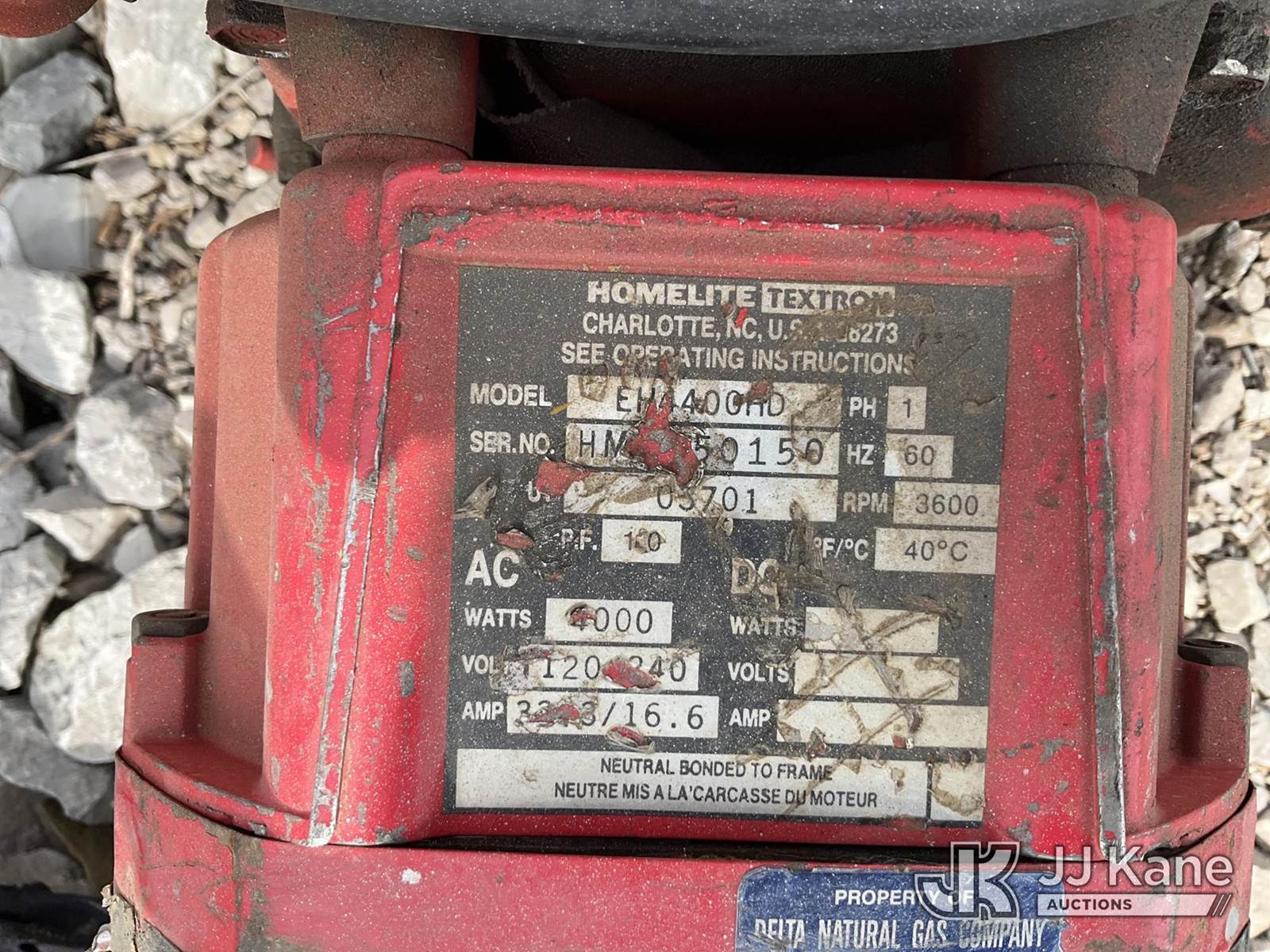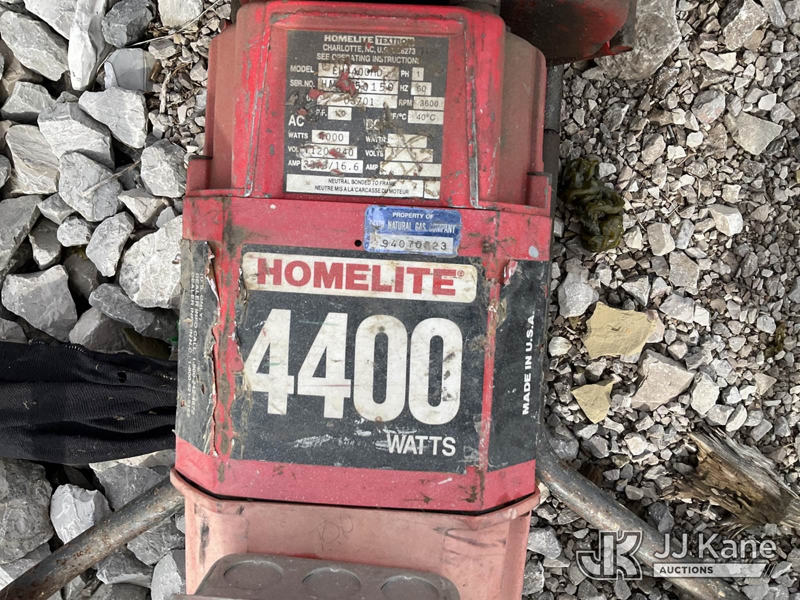 Homelite 4400 watt Generator (Not Running, Condition Unknown) NOTE: This unit is being sold AS IS/WHERE IS via Timed Auction and is located in Verona, KY. Inspection & preview days for this unit are the 2 business days prior to the first day of items closing for this auction, item is located at 2841 Verona-Mudlick Rd Ste B Verona, KY 41092 and hours of operations are 8a-4p. For pre-sale questions, please contact Office Staff @ (502) 612-5080. Auctioneer Michael Whitebread / License # 256617. (Buyer is responsible for removal. Assistance by consignor or JJ Kane Auctioneers is not assured.)