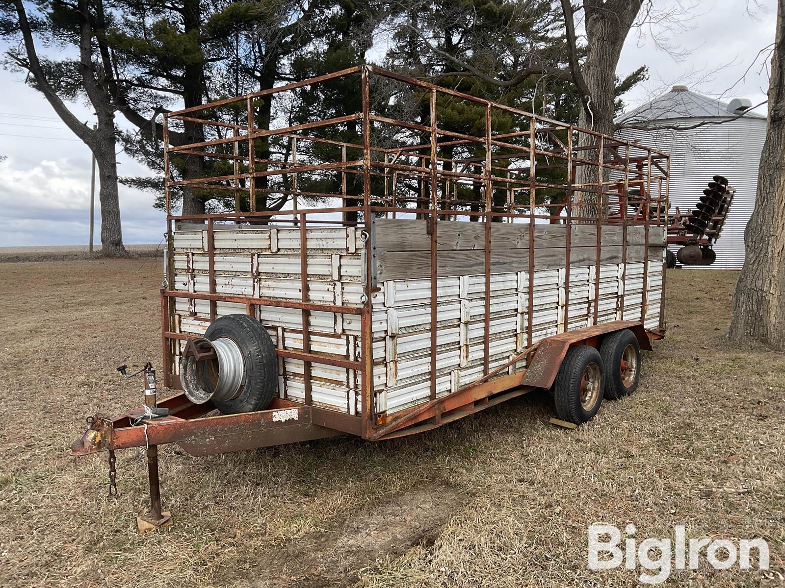 Homemade 16' T/A Trailer, Bumper Hitch, 2 5/16 Ball Hitch, (4) 7-14.5 Tires, Spring Suspension, This Was a Flatbed Trailer Converted To Haul Livestock, 80" Wide, Center Dividing Gate, NOTE: NO TITLE