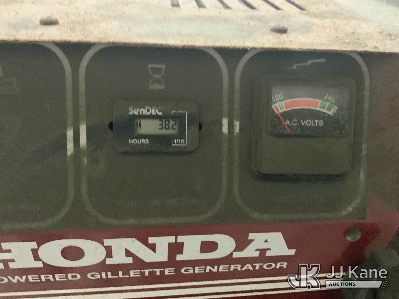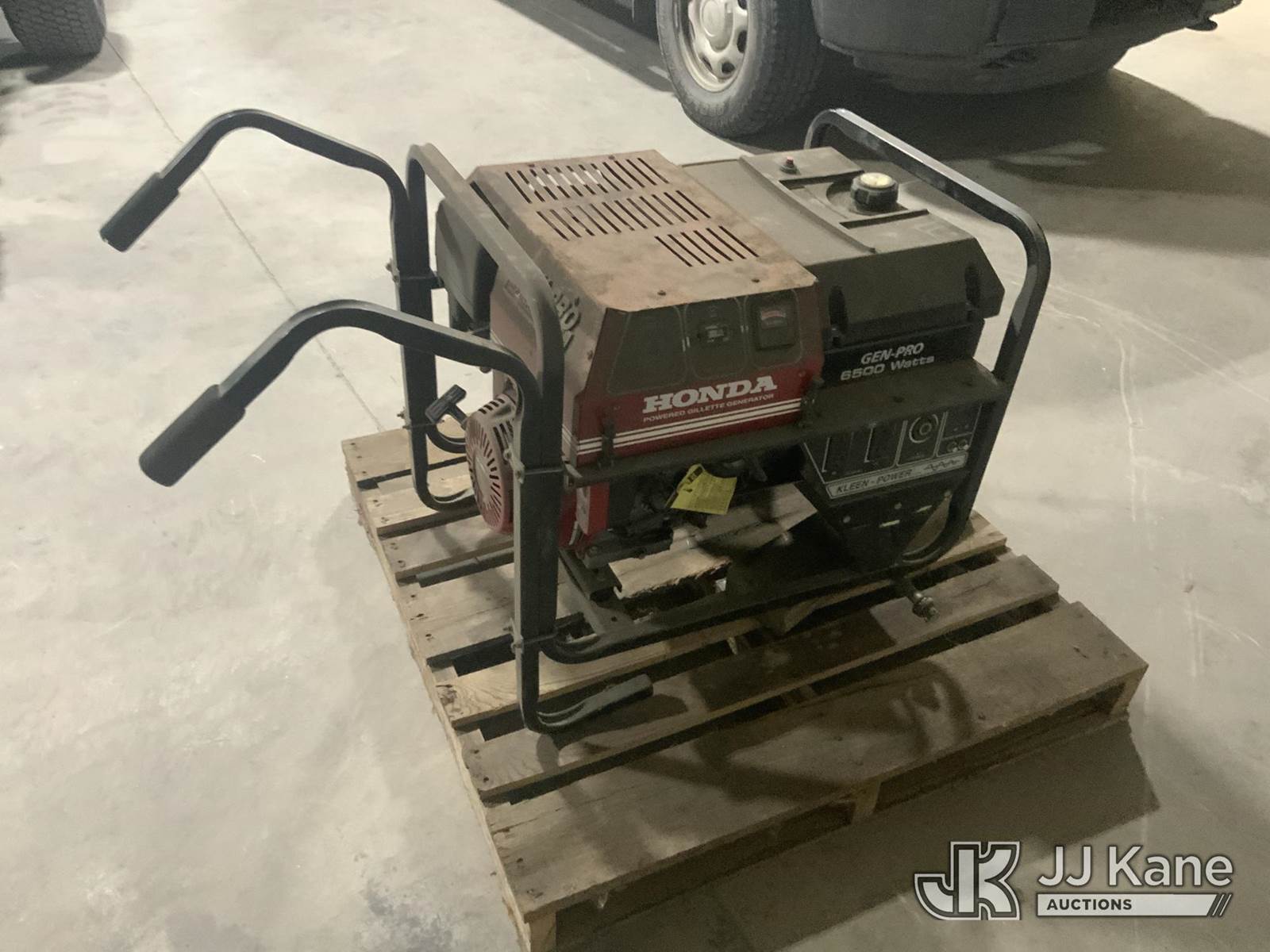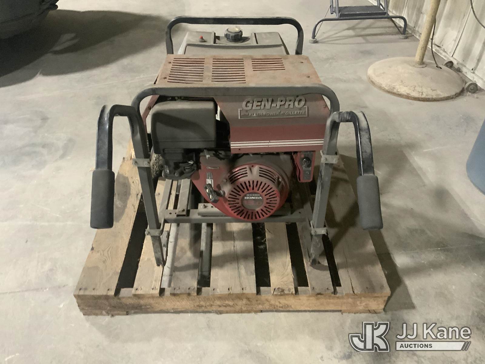Honda Gen-Pro Generator, gas (Runs) (Missing Wheel, Bad Wheel) (Reads 38 hours) NOTE: This unit is being sold AS IS/WHERE IS via Timed Auction and is located in Fort Wayne, IN. For more information & removal arrangements please contact Office Staff @ (260) 450-9822. Load out by appointment only, Buyer/Hauler must present copy of paid invoice upon arrival. Purchaser acknowledges ALL lots must be removed within (10) business days of Auction, or a storage fee may be incurred. For load out and pick up information, please reference the hauler sheet sent out after purchase. (Buyer is responsible for removal. Assistance by consignor or JJ Kane Auctions is not assured.)