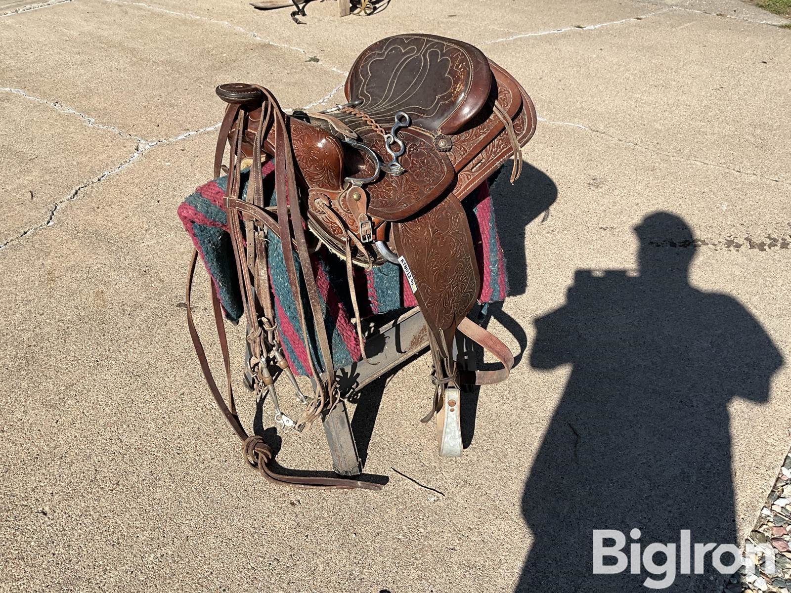 Horse Saddle. Qty: 1. 15.5". Stirrups. Bridle. Saddle Blanket. Spurs