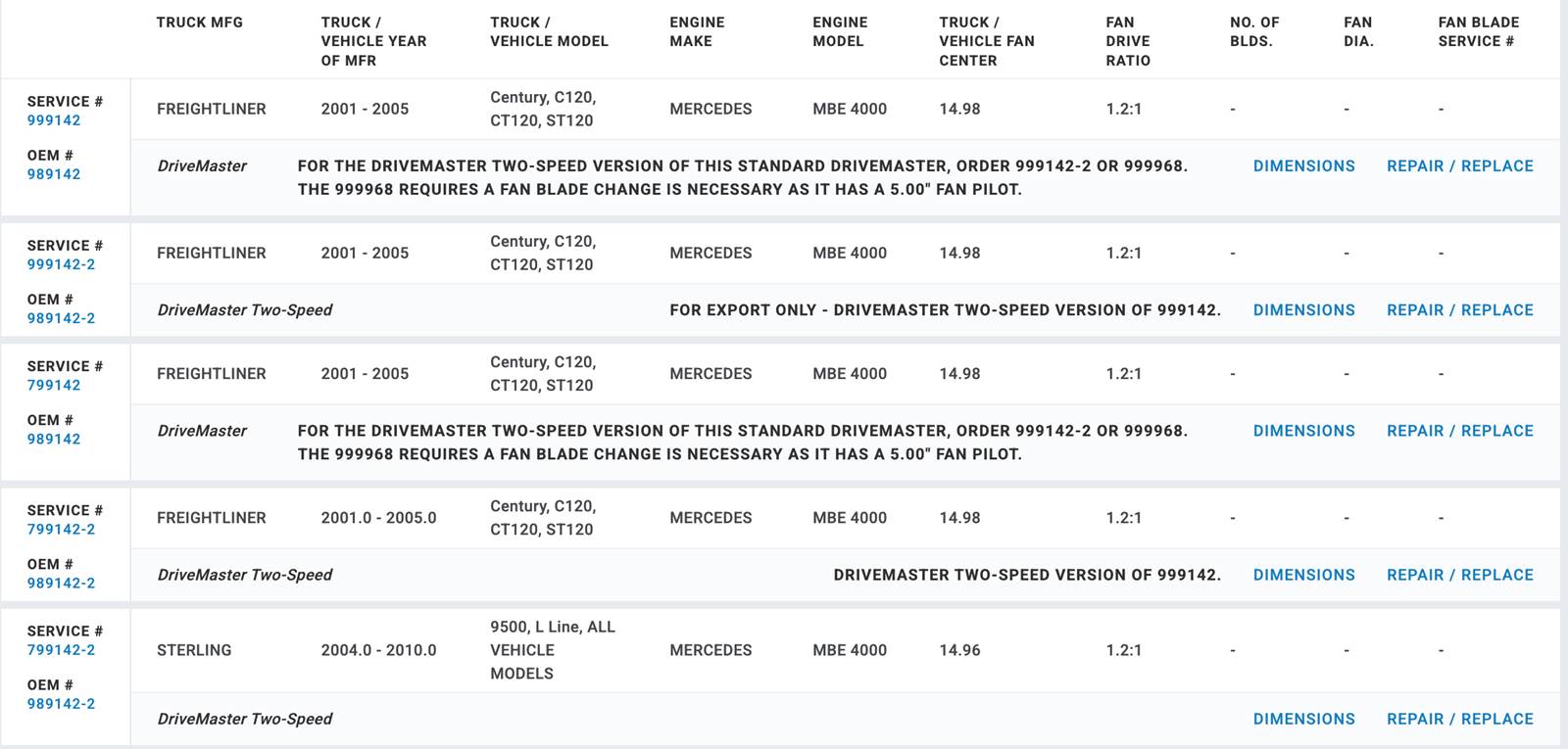 (GOOD USED/ TESTED) Horton Fan Clutch for Mercedes Benz MBE4000 Diesel Engine, for sale!!!! Part #: 989142; Service #: 999142, 999142-2, 799142, 799142-2; OEM #: 989142, 989142-2; Freightliner Application: (2001-2005) Century, C120, CT120, ST120; Sterling Application (2004-2010) L Line, All Vehicles; Stock #: FC2842 (TAKE A LOOK AT CHART IN PICTURES TO VERIFY IF THIS FAN CLUTCH WORKS FOR YOU!!!!!)