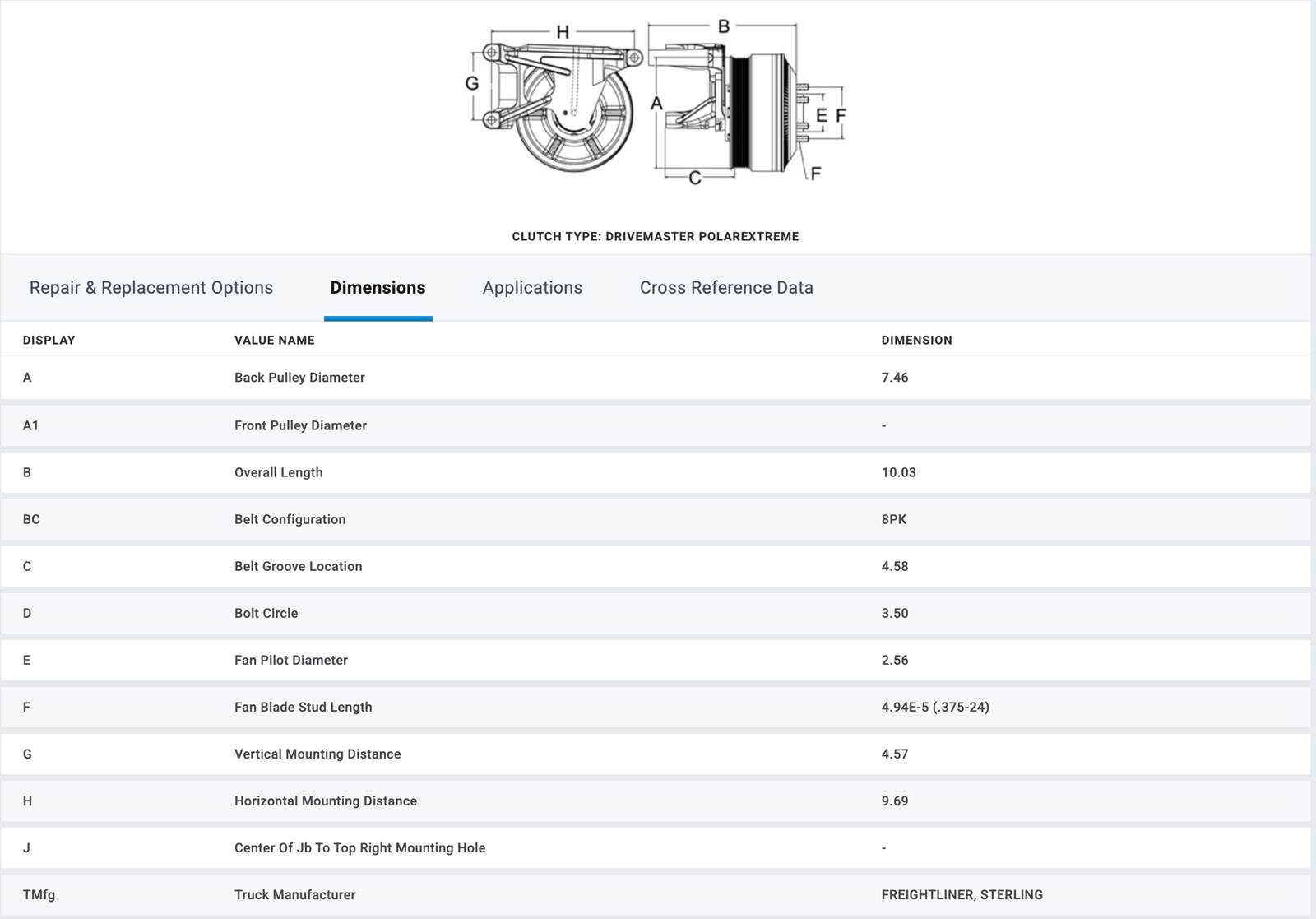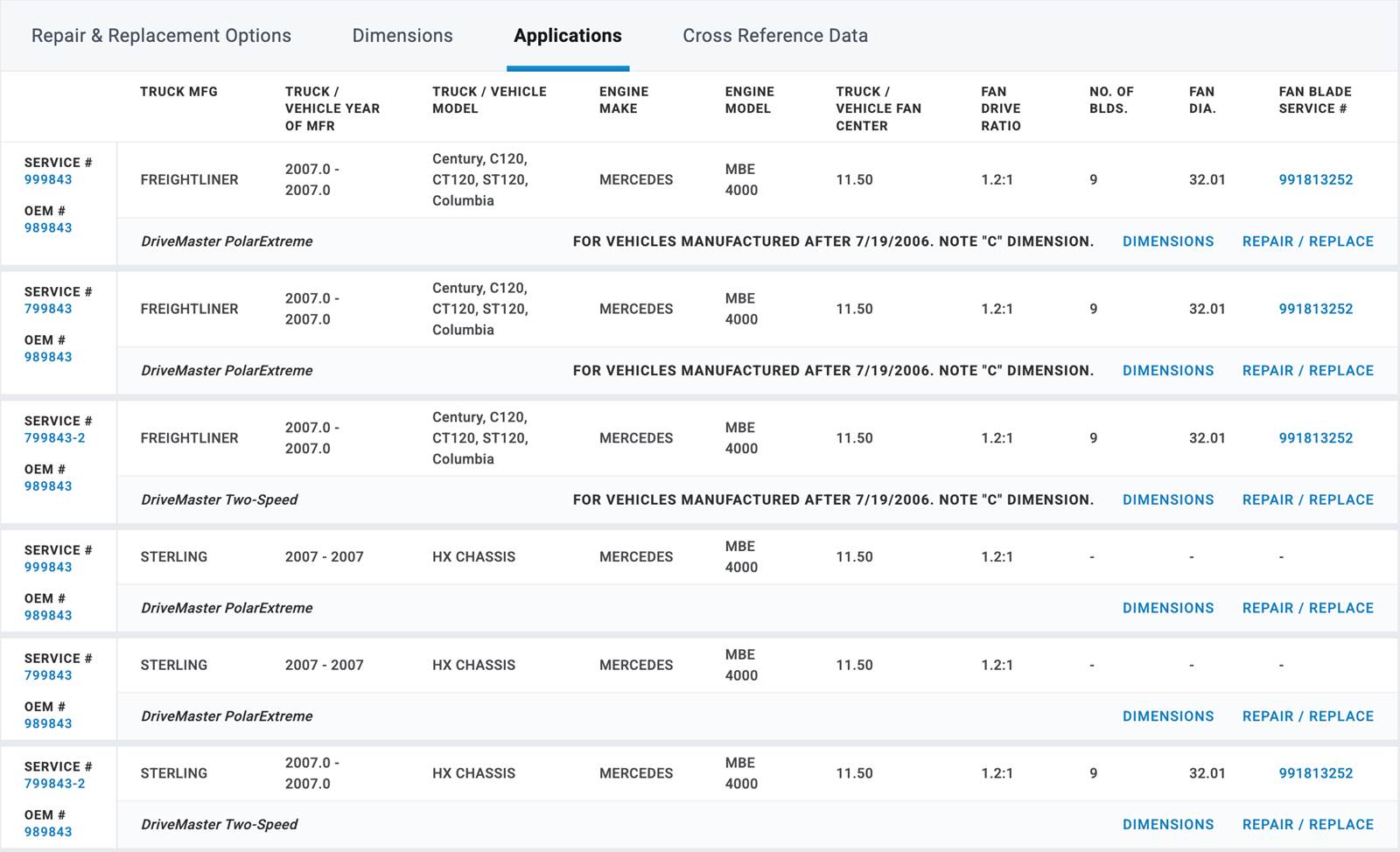 (GOOD USED/ TESTED) Horton OEM Fan Clutch for Mercedes Benz MBE4000 Diesel Engine, for sale!!! Part #: 989843; Service #: 999843, 799843, 799843-2; OEM #: 989843; Truck Application: Freightliner (2007) Century, C120, CT120, ST120, Columbia, Sterling (2007) HX Chassis; Stock #: FC2807 (TAKE A LOOK AT CHART IN PICTURES TO VERIFY IF THIS FAN CLUTCH WORKS FOR YOU!!!!)