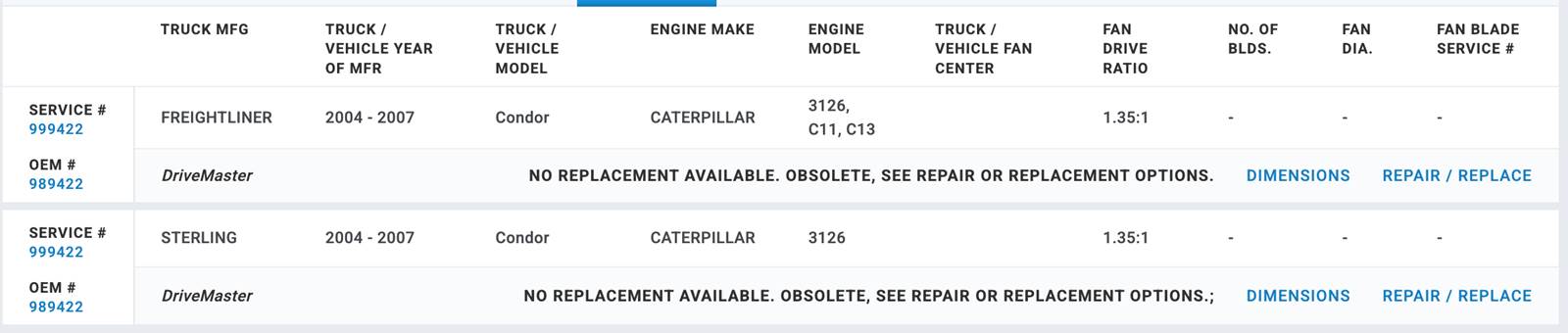 (GOOD USED/ TESTED) Horton Fan Clutch for Caterpillar 3126, C11, C13 Diesel Engine, for sale!!! Service #999422; OEM #: 989422; Truck Application: Freightliner (2004-2007) Condor; Sterling (2004-2007) Condor; Stock #: FC2853 (TAKE A LOOK AT CHART IN PICTURES TO VERIFY IF THIS FAN CLUTCH WORKS FOR YOU!!!!!)