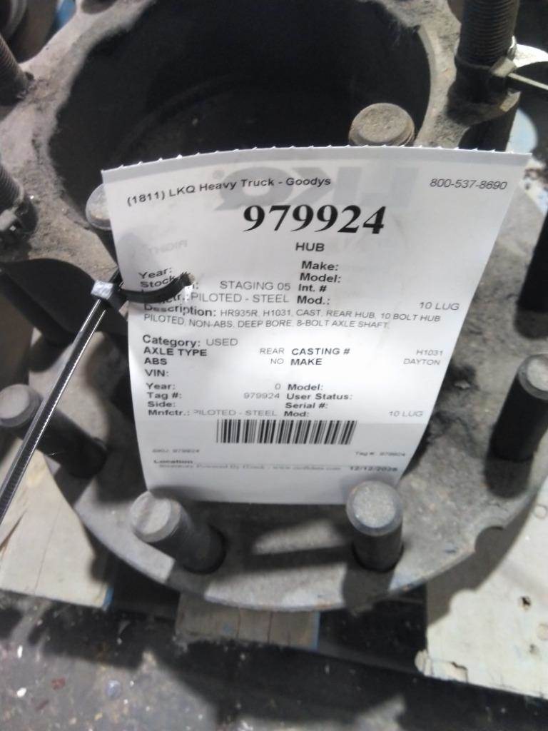 HR935R, H1031, CAST, REAR HUB, 10 BOLT HUB PILOTED, NON-ABS, DEEP BORE, 8-BOLT