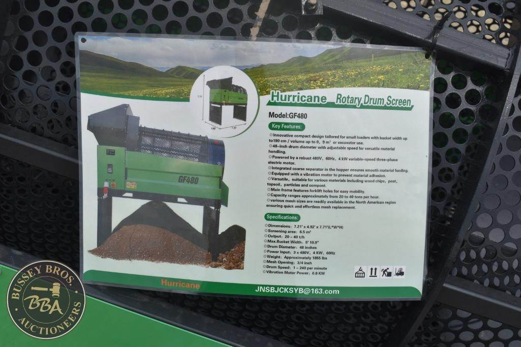 Hurricane Rotary Drum Screen Electric Powered 7ft x 5ft drum, NEW/UNUSED SN: GF480F2024080067