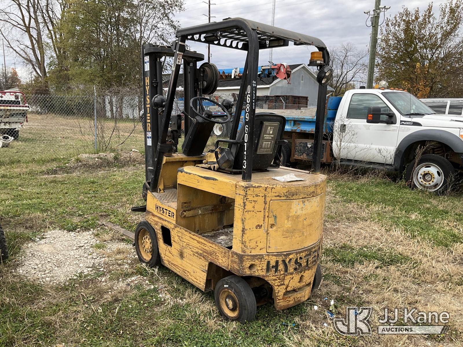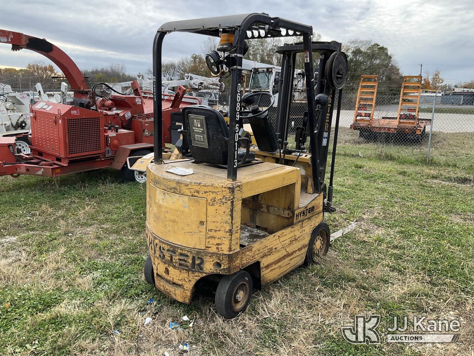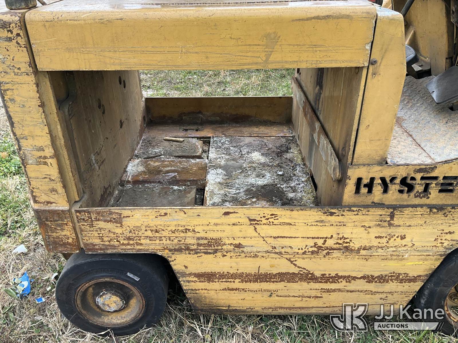 Hyster 30 Solid Tired Forklift, Shuttle, battery powered, with 2 stage mast, 48 In. Forks, VIN / information tag unreadable, (Not Running, Condition Unknown, Missing Batteries) (Reads 2,098 hours) NOTE: This unit is being sold AS IS/WHERE IS via Timed Auction and is located in Charlotte, MI. Inspection & preview days for this unit are the 2 business days prior to the first day of items closing for this auction, item is located at 750 Island Hwy Charlotte, MI 48813 and hours of operations are 8a-4p. For pre-sale questions, please contact Corey Cook at (517) 983-0796 or corey.cook@jjkane.com (Buyer is responsible for removal. Assistance by consignor or JJ Kane Auctioneers is not assured.)