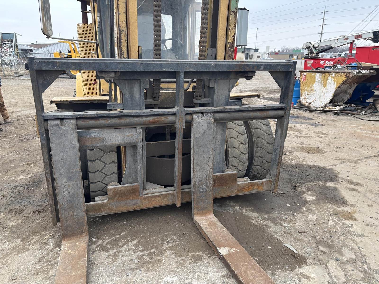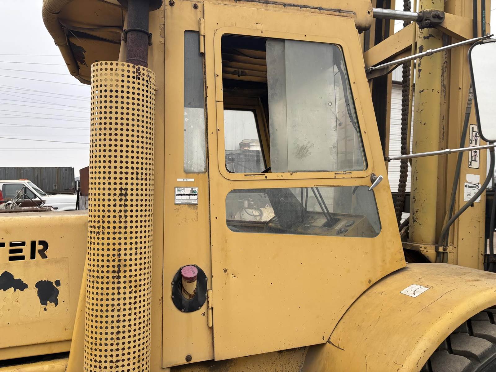 6 Cylinder Perkins Diesel Engine, 2 Speed, Shuttle Shift Foot Pedal, Rear Wheel Steer, 2-Stage Mast, Approx 25800 Max Capacity, Approx 15' Max Lift Height, Side Shift, Approx 70" Long Forks, EROPS, Heat/AC, 10.00-20 Tires