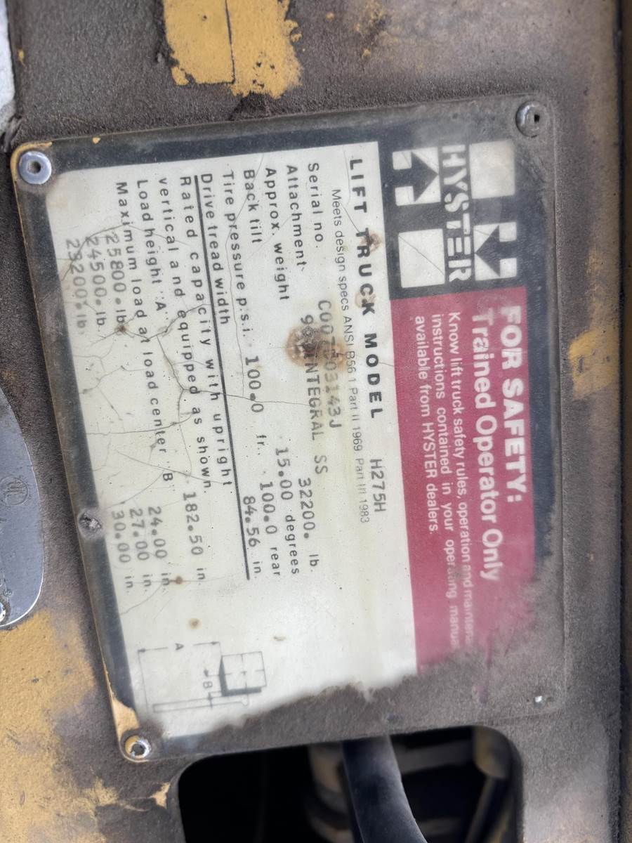Hyster H275H Pneumatic Tire Forklift