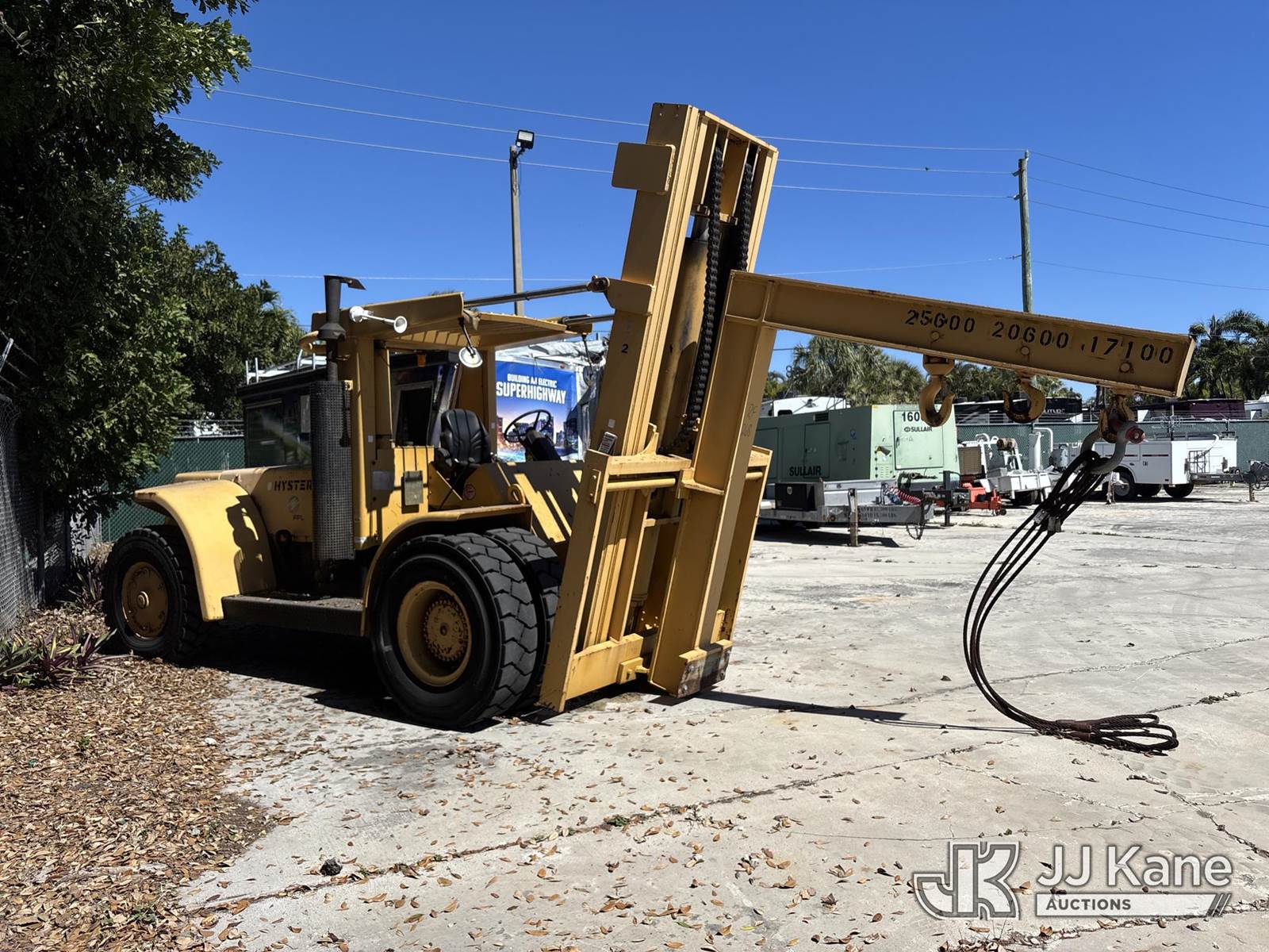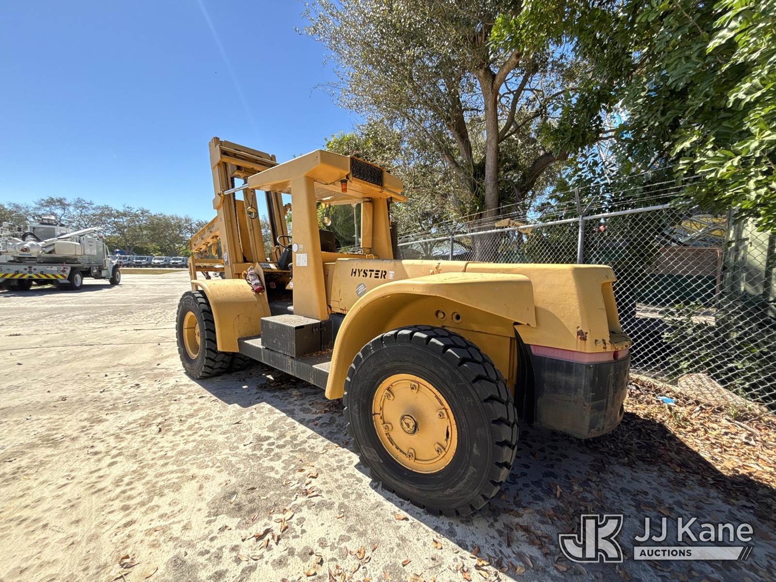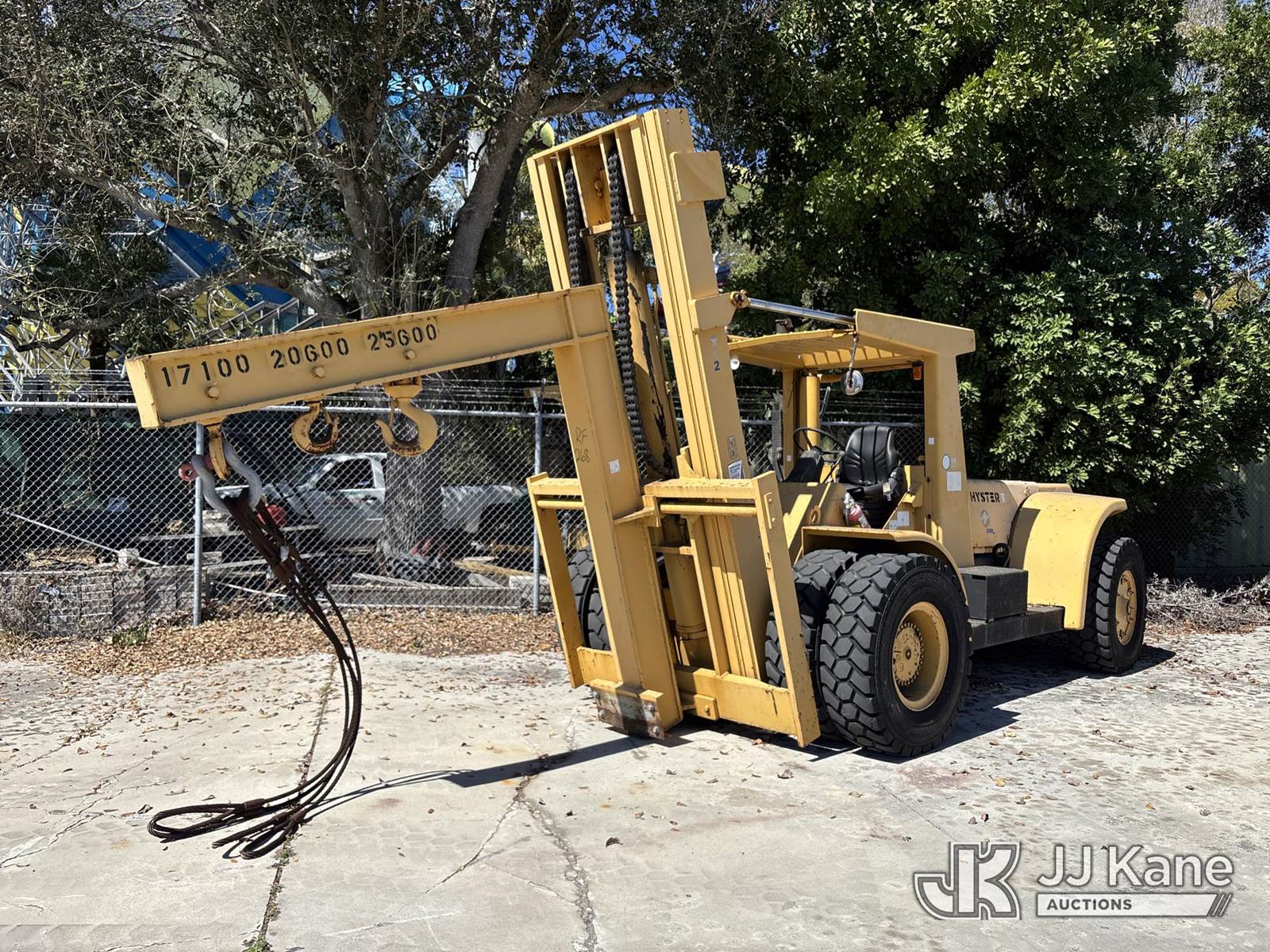 Hyster Rough Terrain Forklift, Detroit 4-53T diesel, manual, (Runs/ Moves, No Forks)( No Brakes, Hydraulic Leak, Mast Tilt Cylinders Leaking) (Reads 581 hours) NOTE: This unit is being sold AS IS/WHERE IS via Timed Auction and is located in Riviera Beach, FL. An inspection day for FPL auction items will be conducted on the Friday before the auction from 8a-3p at 2455 Port West Boulevard, Riviera Beach, FL 33407. Winning Buyer/Hauler must present copy of paid invoice upon arrival to pick up. For load out and pick up information, please reference the release form sent out after purchase. Any more information please call Andy Garcia @ 561-215-0085. (Buyer is responsible for removal. Assistance by consignor or JJ Kane Auctions is not assured.)