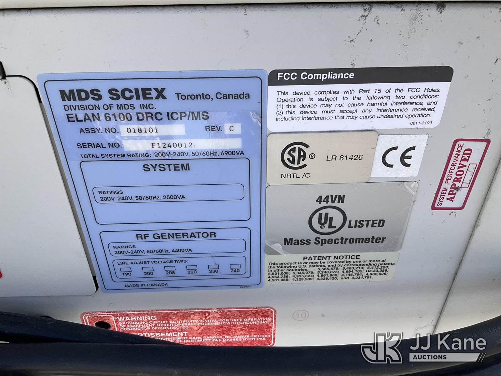 ICP Mass Spectrometer Elan DRC Plus NOTE: This unit is being sold AS IS/WHERE IS via Timed Auction and is located in Las Vegas, NV. Inspection & preview days for this unit are the 2 business days prior to the first day of items closing for this auction, item is located at 14655 Grand Valley Pkwy Las Vegas, NV 89165 and hours of operations are 8a-4p. Titles executed exactly as bidder registered. Ensure your name and/or business name and address in JJ Kane and/or ProxiBid is correct before bidding. For pre-sale questions, please contact Office Staff @ (801) 519-0123 and provide sale date and lot number. Las Vegas Dealer License Number DLR000053086 / OHV000053094. (Buyer is responsible for removal. Assistance by consignor or JJ Kane Auctions is not assured.)