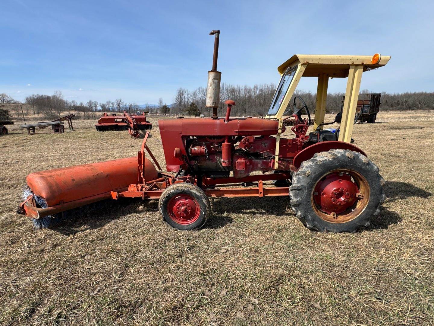Details: International 140 Tractor: s.n. 52815J, 28 HP gasoline engine, canopy w/ windshield, 6' front matted broom