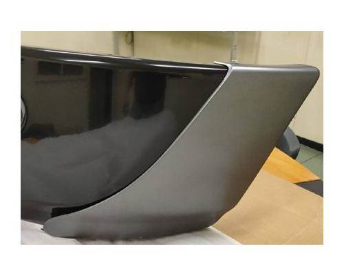 2002-2015 INTERNATIONAL DURASTAR 4300/4400 FRONT BUMPER (EDP BLACK) WITH LARGE TOW HOOD HOLES, PLASTIC END CAPS, BLACK STEEL, 14"