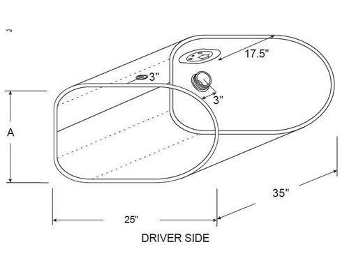 INTERNATIONAL 4300/4400 55 GAL. FUEL TANK 16" X 25" X 35" D SHAPED TANK DRIVER SIDE FRONT FILL.