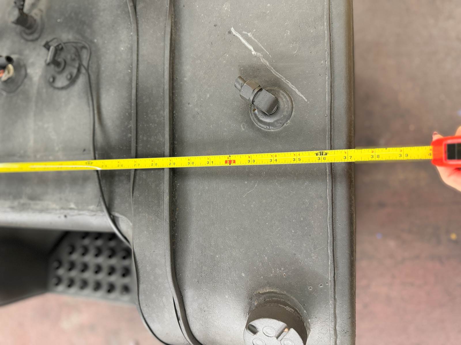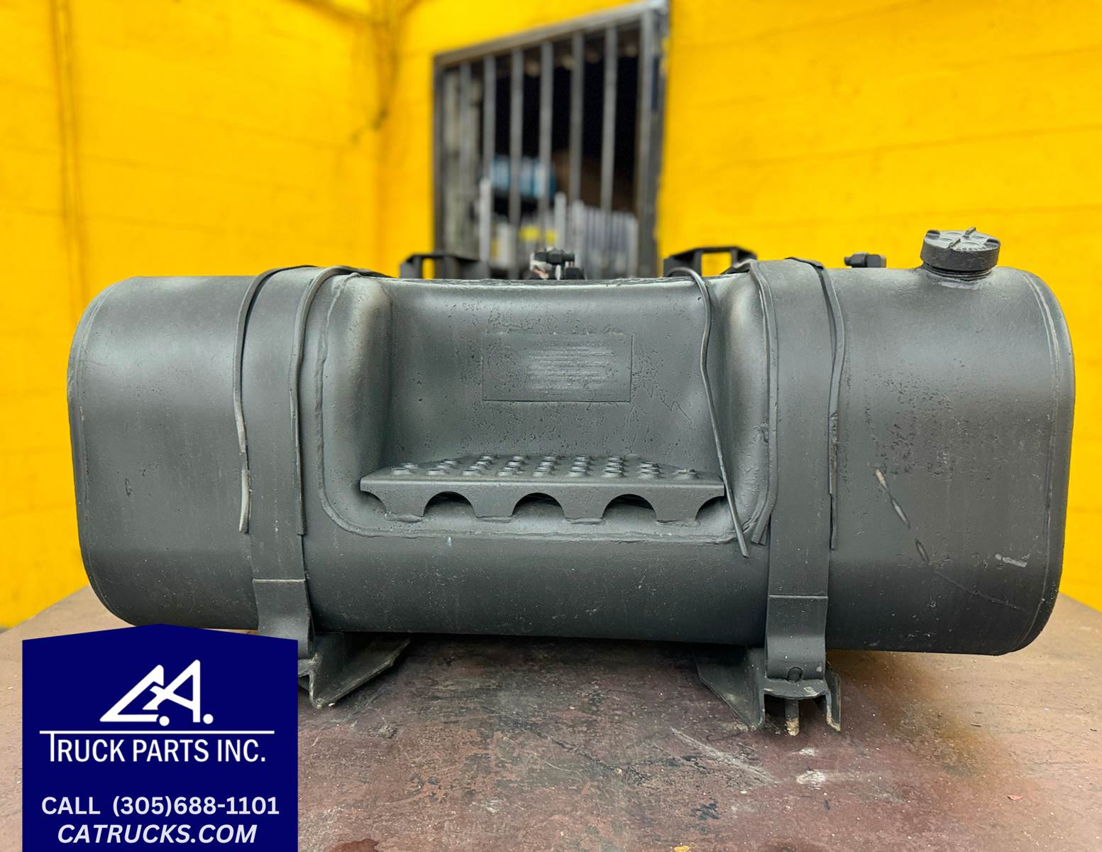 (GOOD USED) International 4700 Snyder 60 Gallon Driver’s Side Fuel Tank with Step For Sale, Shape: Rectangular, Material: Steel, Driver’s / Left Side, 60 Gallons, Dimensions: 37 (L) x 24 (W) x 16 (H) INCHES, Stock # 7946