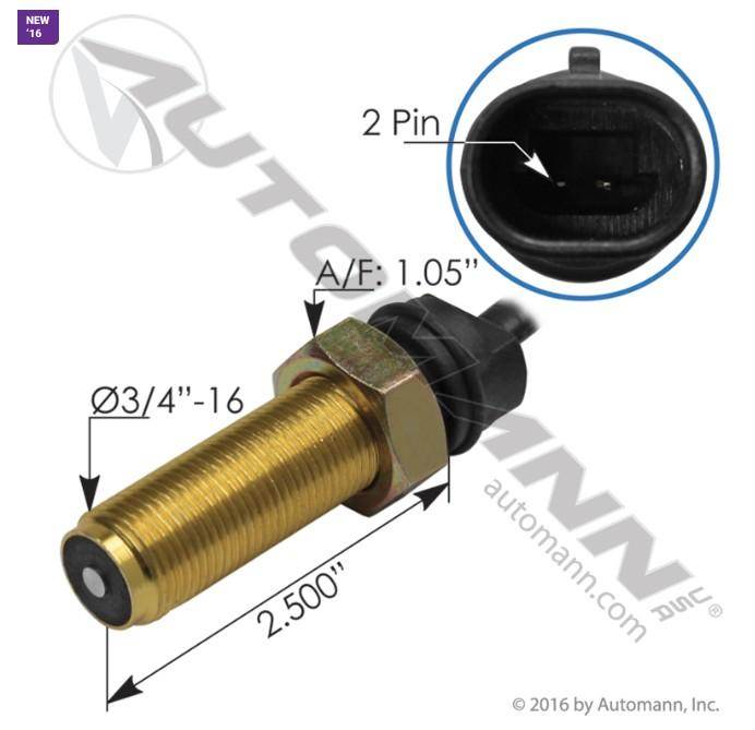 ELECTRIC SPEEDOMETER SENSOR MACK WITH EATON/FULLER TRANS, RECTANGULAR CONNECTOR , OVERALL LENGTH 16.25" , PIN COUNT 2 MALE, THREAD...