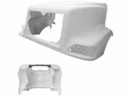 1997-1999 INTERNATIONAL 9200 PREMIUM FIBERGLASS HOOD, NOT PAINTED, FLAT WINDSHIELD, SBA (SET BACK AXLE) WITH HINGE BAR, 59" LONG, 74 3/4" CAB WIDTH, 94 1/4" TOTAL WIDTH. ON A PALLET