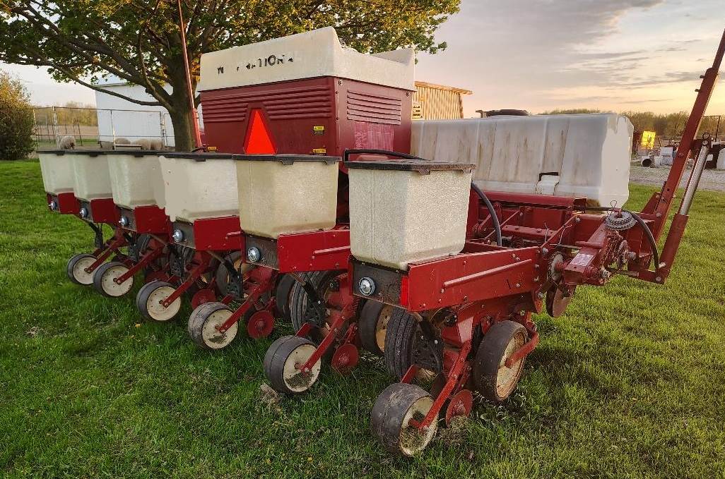 1984 International 800 Cyclo Air Planter, 6 Rows, attachments to plant corn or bean seeds