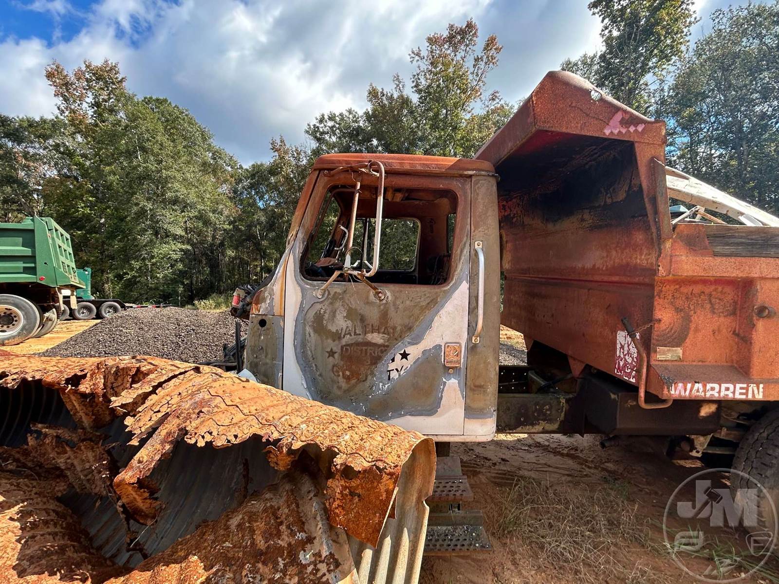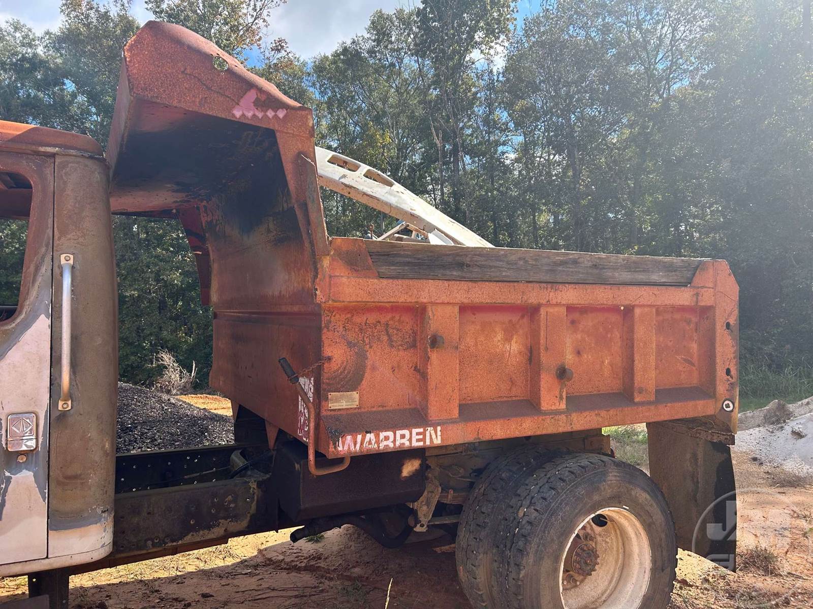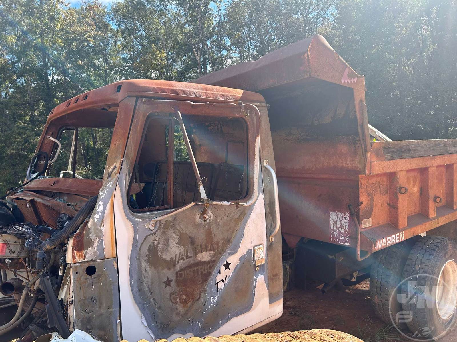 SINGLE AXLE DUMP, SPRING RIDE SUSP, DISC WHEELS, WARREN DUMP BODY, TIRES 11R22.5, ***INOP***, ***BURNED & PARTS MISSING*** ***NO TITLE, SOLD BILL OF SALE ONLY; SELLING FOR PARTS ONLY**** *******NO TITLE***SELLING FOR PARTS ONLY**********LOCATED IN TYLERTOWN, MS***