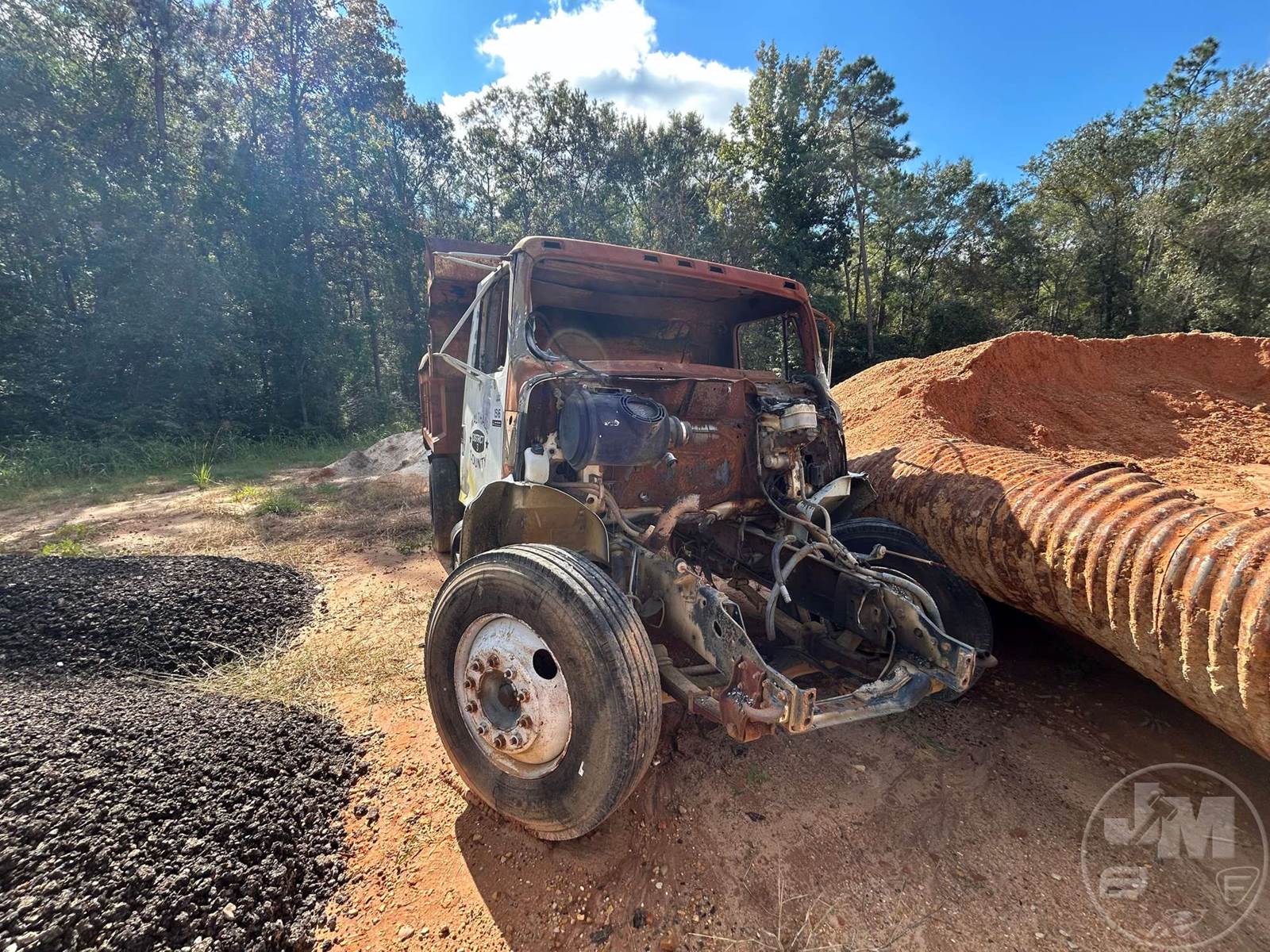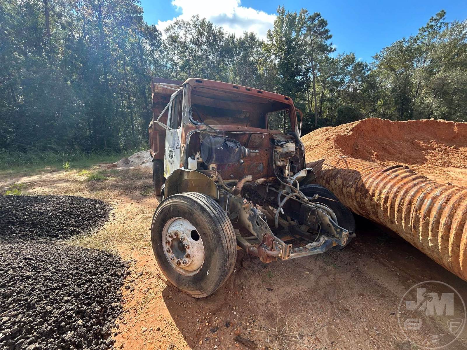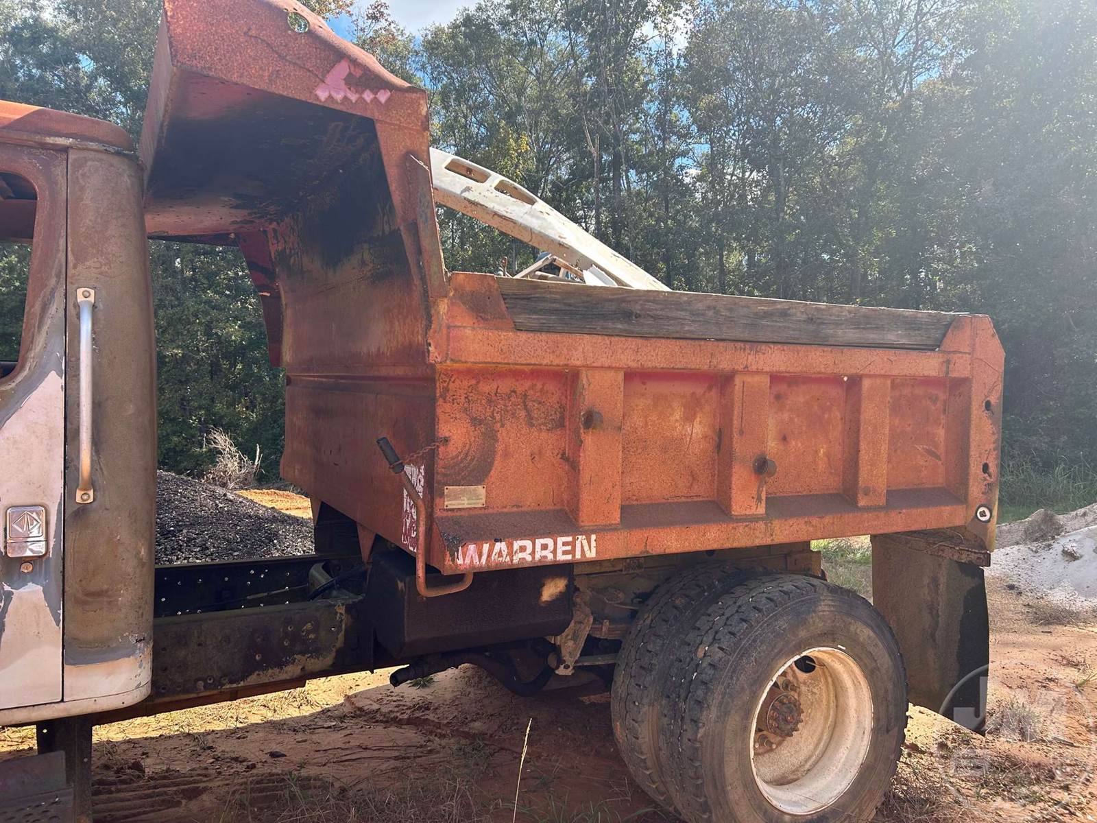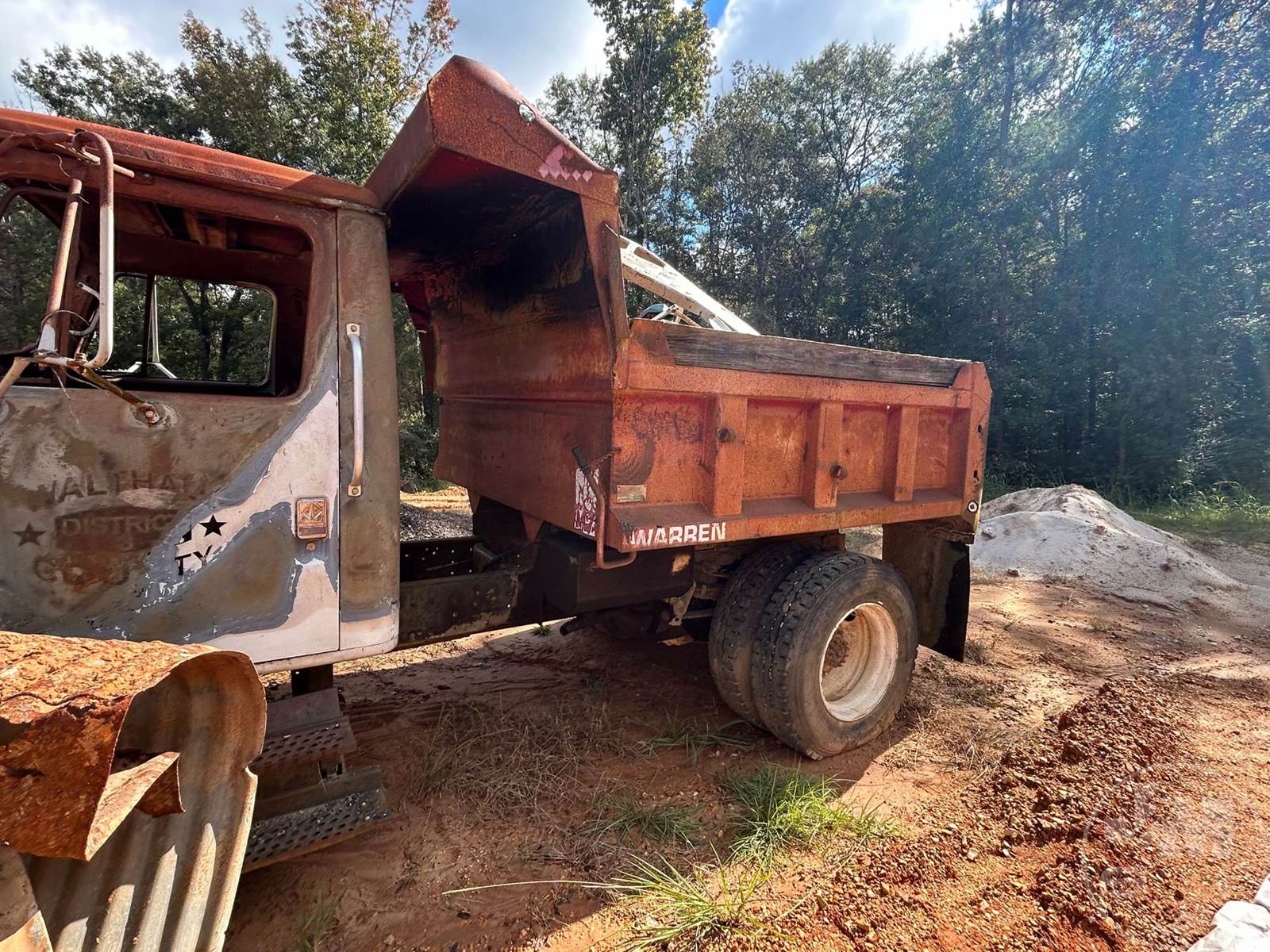 SINGLE AXLE DUMP, SPRING RIDE SUSP, DISC WHEELS, WARREN DUMP BODY, TIRES 11R22.5, ***INOP***, ***BURNED & PARTS MISSING*** ***NO TITLE, SOLD BILL OF SALE ONLY; SELLING FOR PARTS ONLY**** *******NO TITLE***SELLING FOR PARTS ONLY**********LOCATED IN TYLERTOWN, MS***