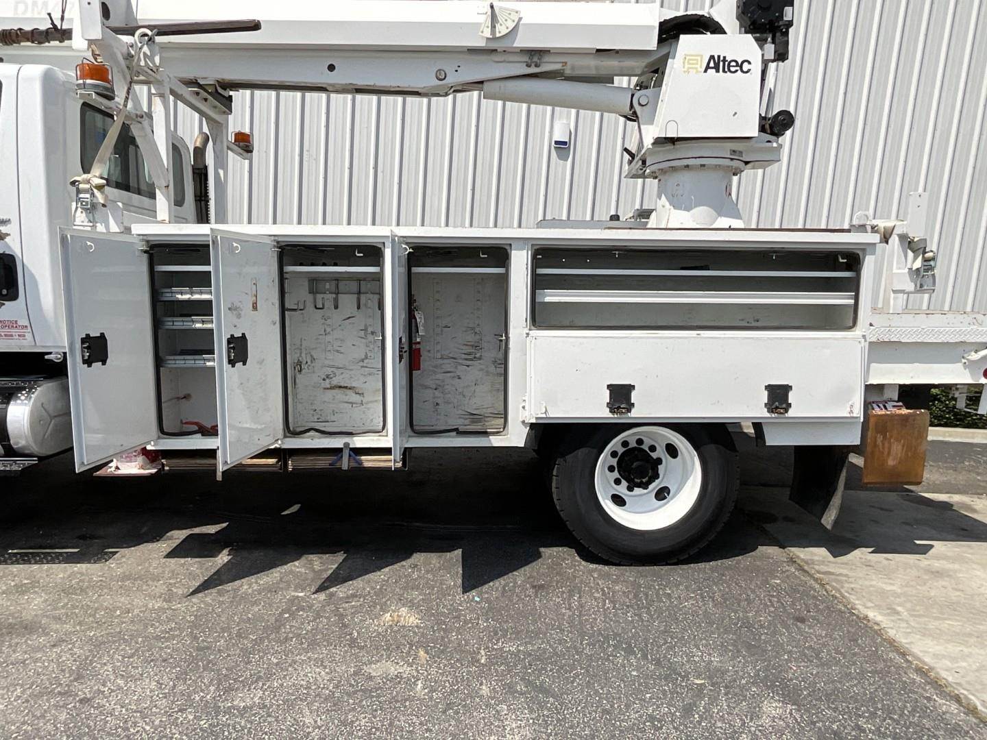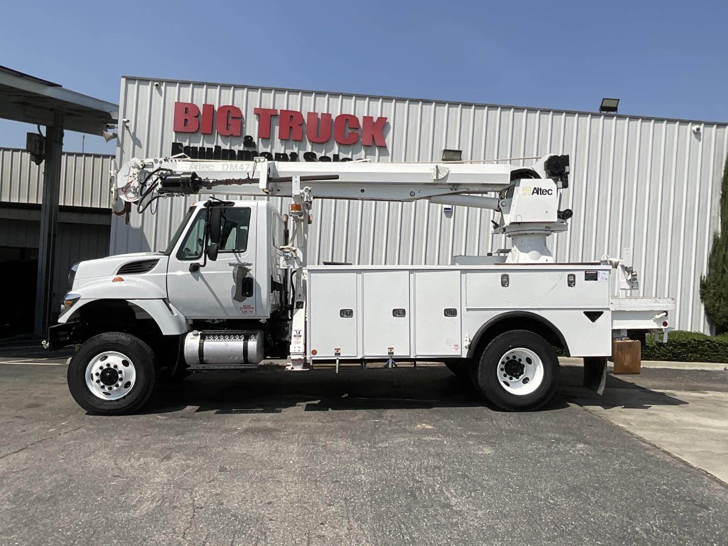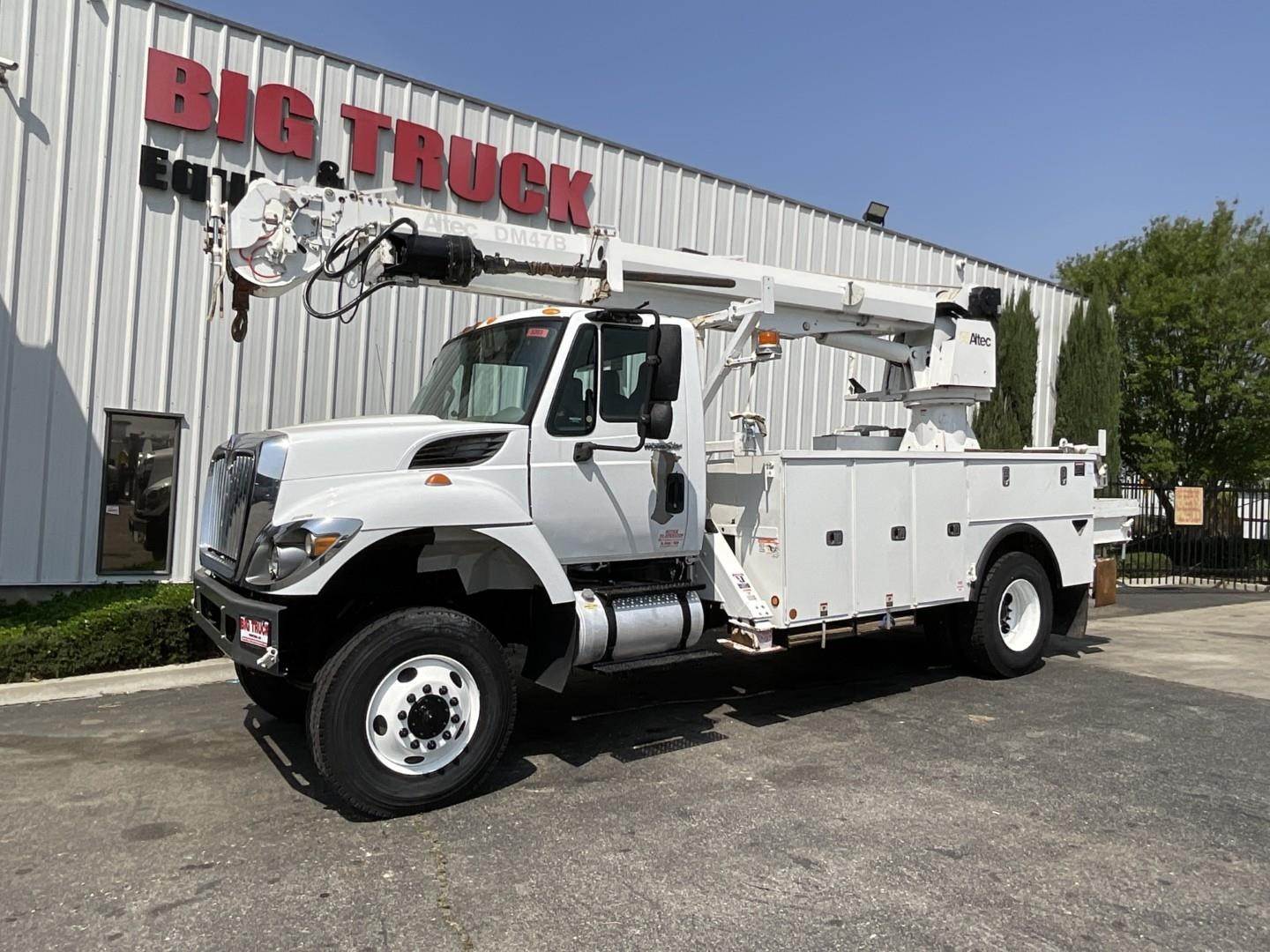 2014 International 7300 4x4 Altec DM47 BTR Digger Derrick, MaxxForce DT @ 260HP, Allison 3000 RDS Automatic, Air Brakes, Trailer Air Brakes, Pintle Hitch, Altec DM47B-TR Digger Derrick, 23,790LB Capacity, 47′ Sheave Height, Rear Riding Console, Upper Boom Controls, Wireless Remote, 2 Speed Digger, Utility Bed, Pole Grabs, Rear Mounted Hydraulic Hose Reel, 4 Hydraulic Outriggers, Tested & Certified, 33,000 GVWR, 2,794 PTO Hours, 6,792 Total Engine Hours, Odometer Reading 50,977 Miles