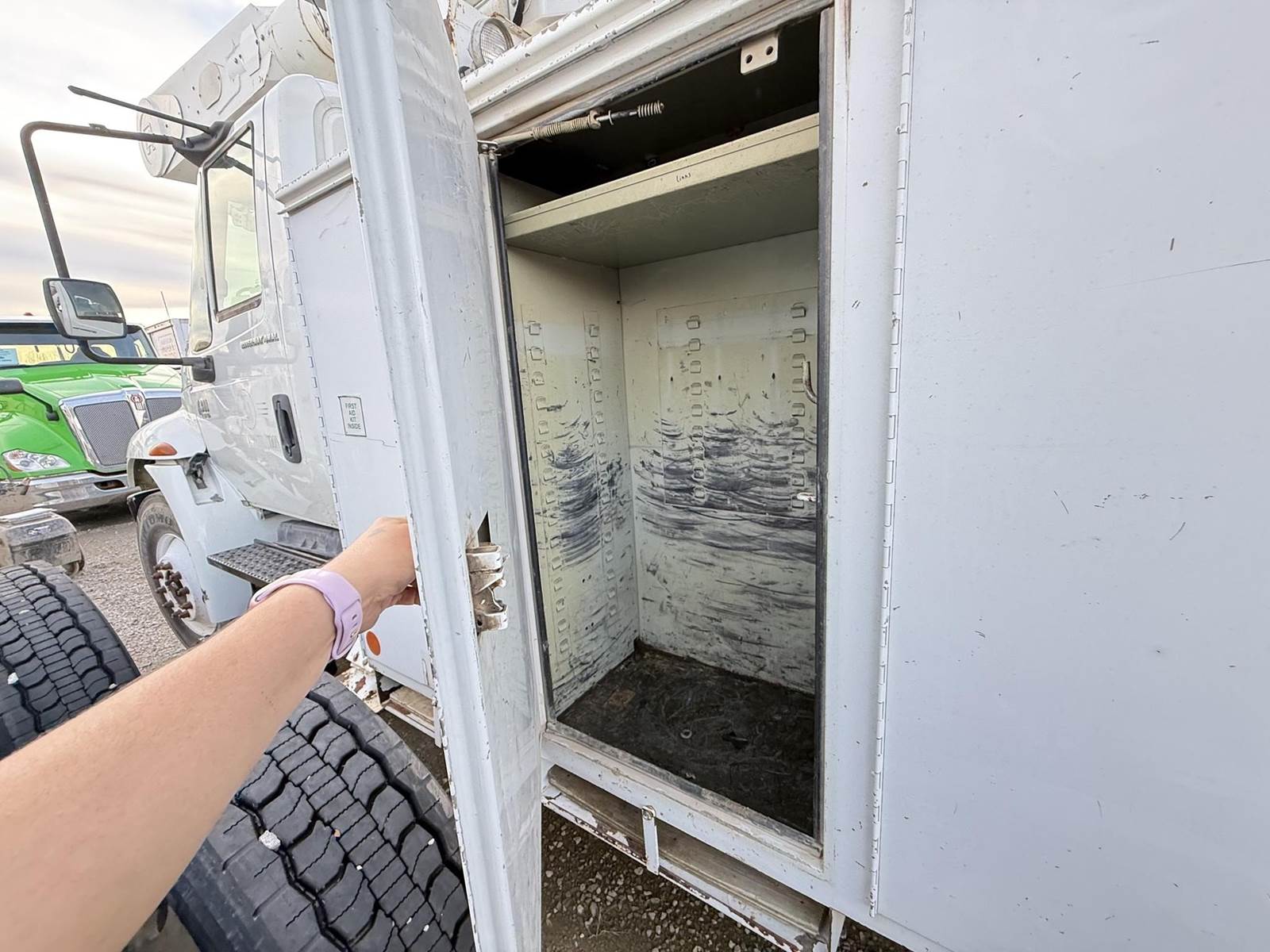 GOOD TRUCK, RUNS GREAT, CLEAN, GOOD CAB, GOOD TIRES, AIR BRAKES, 2 MAN BUCKET, 4 X 4 WITH TRANSFER CASE, LOTS OF STORAGE, SLIDING DRAWER...