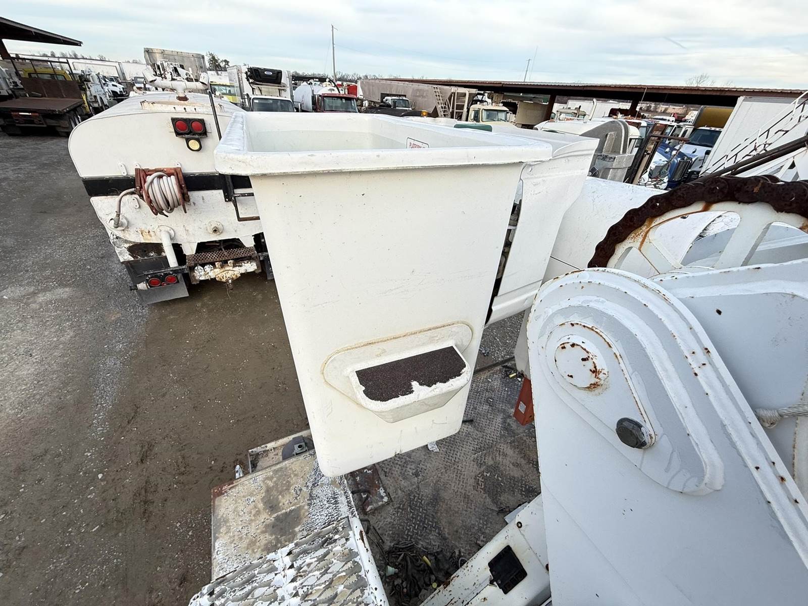 GOOD TRUCK, RUNS AND OPERATES FINE, TRUCK IS CLEAN, 2 MAN BUCKET, AIR BRAKES, LIVE TANDEM, MATERIAL HANDLER!,