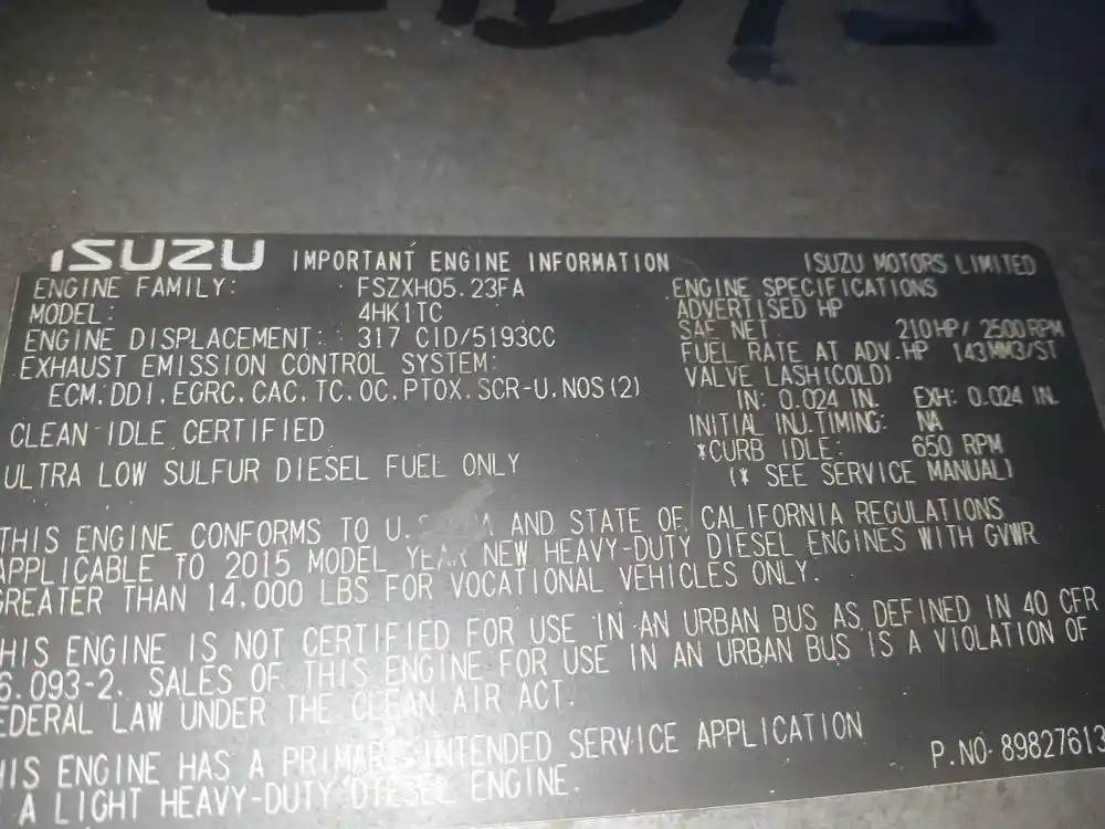 Isuzu 4HK1TC Engine for a 2016 Isuzu C/O NRR
